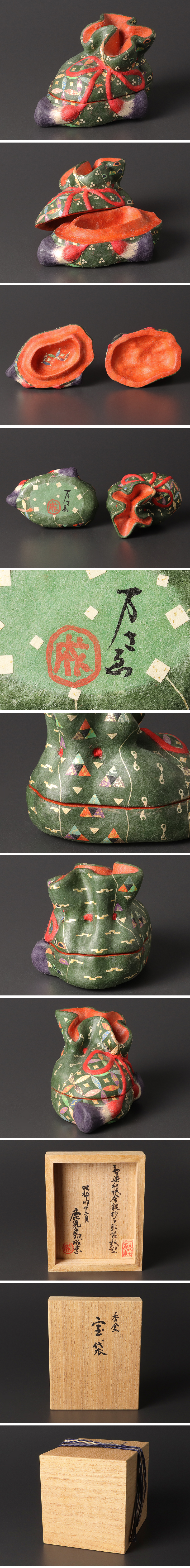 | 【古美味】鹿児島成恵 寿染和紙金銀砂子貼装紙塑 宝袋 香合 茶道具 保証品 |