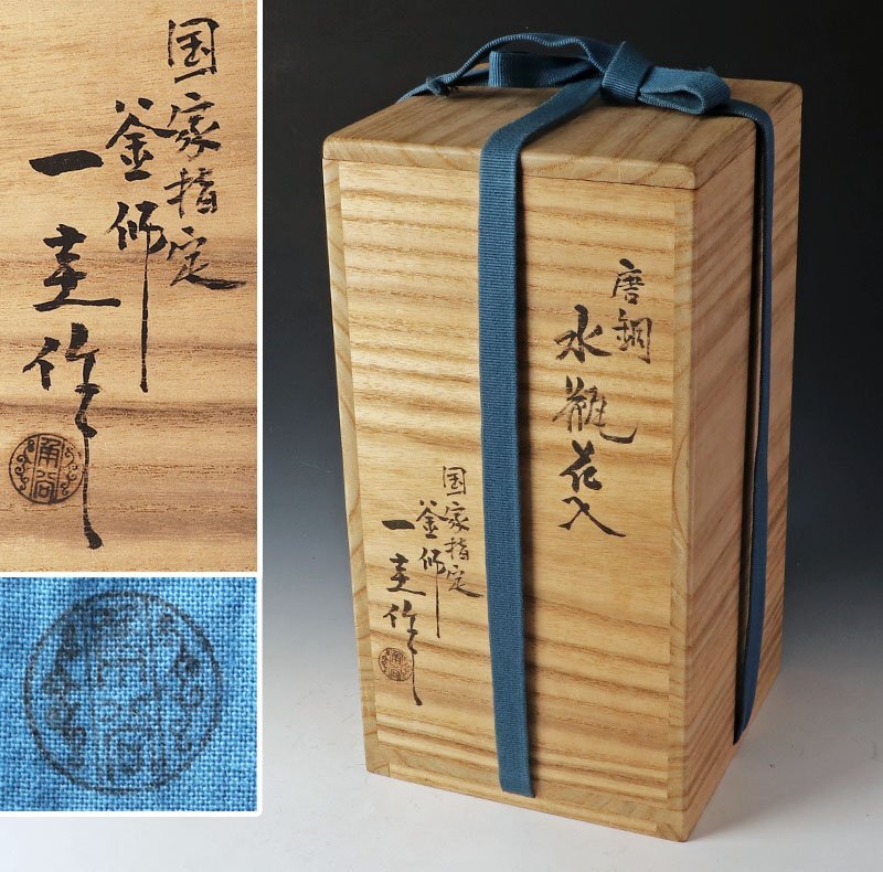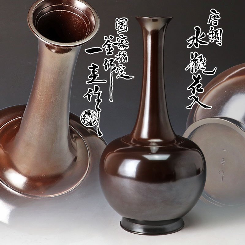 | 【古美味】人間国宝 釜師 角谷一圭作 唐銅水瓶花入 茶道具 保証品 |