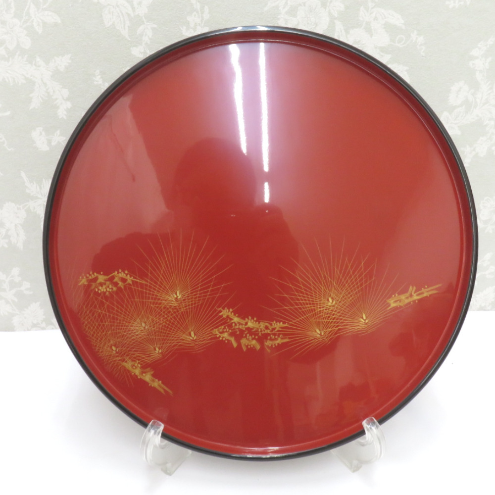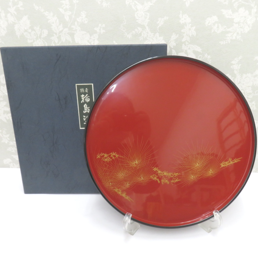 | 骨董・民芸品 輪島塗 丸盆 平盆 お盆 漆器 沈金 能登輪島 漆芸 天然木 箱有 |