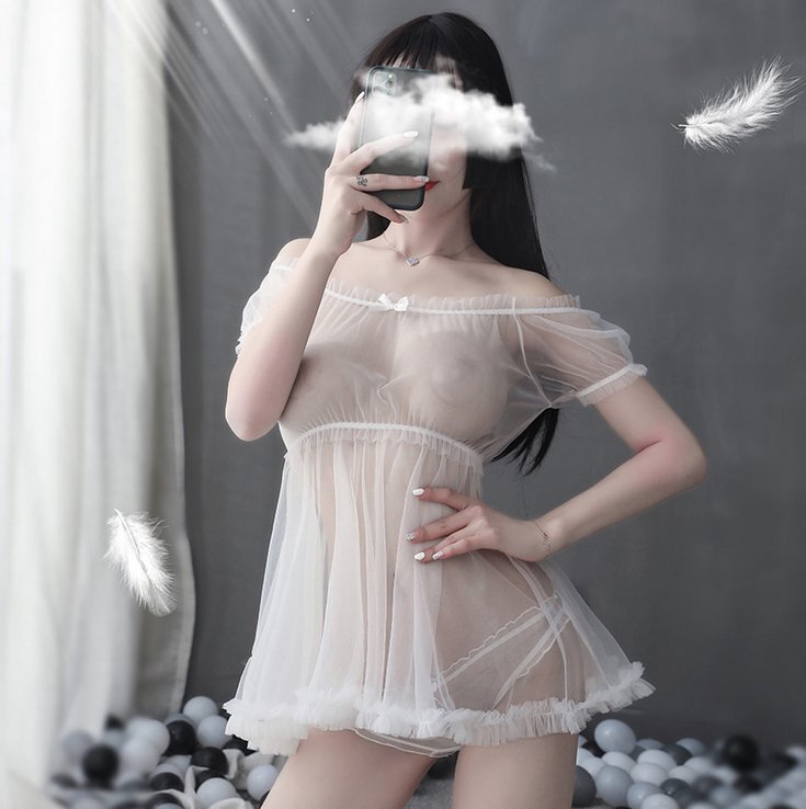 超セクシー 誘惑悩殺 シースルー レースランジェリー【ベビードール・ショーツ2点セット】下着 キャミソール ベビードール ホワイト