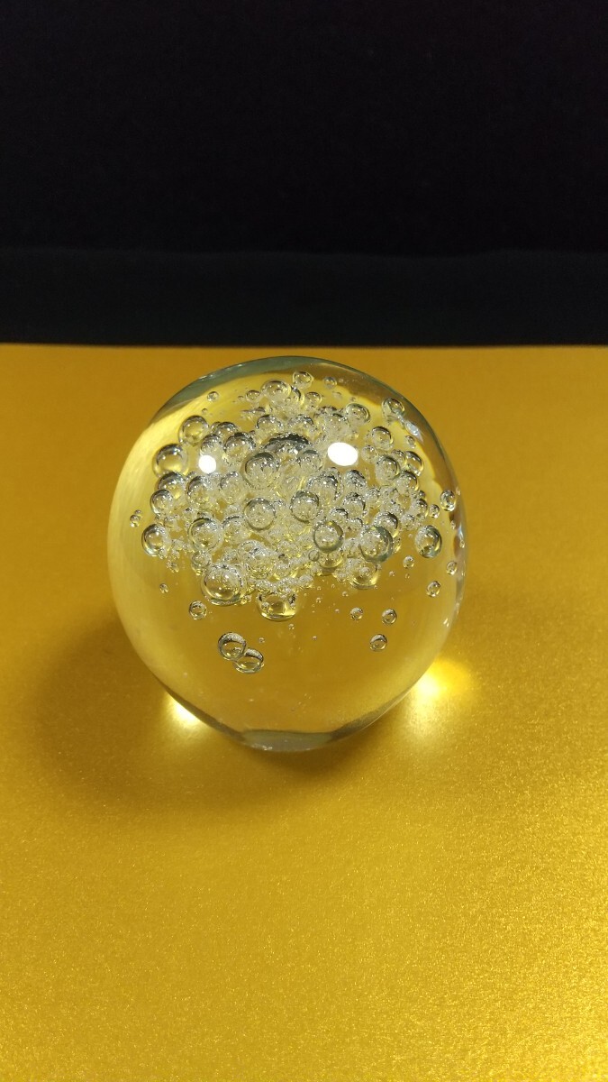 17年以上経っています。八角形の文鎮は、服部峻昇さんの「吉祥」という作品です。天縁を金色で隅取りし、橫八面に吉祥模様と波線を交互に刻んでいます。直径63㎜です。箱は少し汚れています。ドーム型のガラスの文鎮 は、高さ60、直径53㎜で気泡がキレイです。長方形の文鎮は、大理石製で天が丸くなっています。縦28、橫200、高さ30㎜で底面の四隅は少し欠けたので、サンドペーパーで滑らかにしています。