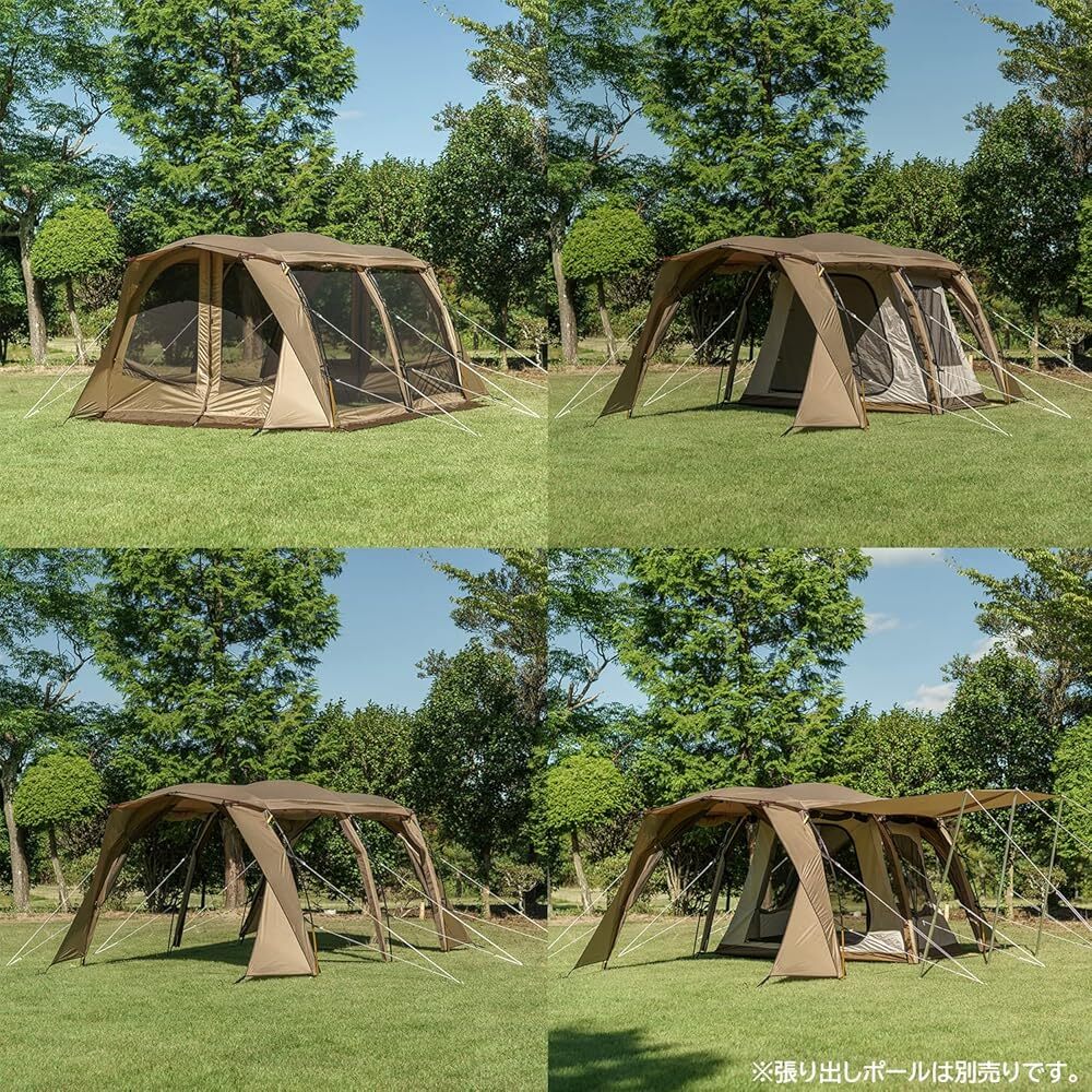 「商品情報」アポロンの造形と剛性をそのまま引き継いだコンパクトサイズ。前後どちらにも取り付け可能なインナーテントで、多様な使い方を実現。シンプル構造で設営しやすく、全面フルメッシュで四季を通して快適です。「主な仕様」素材:(フライ)ポリエステル75d(耐水圧1,800mm)、(インナー)ポリエステル68d、(グランドシート)ポリエステル210d(耐水圧1,800mm)、(ポール)6061アルミ合金(直径16mm、14.5mm、13mm)サイズ:255(横幅)×182(高さ)×440cm(奥行)重量:フライ約6.0kg、インナー約2.0kg、ルーフフライ約0.6kg、ポール約4.6kg、付属品4.09kg付属品:張り綱、アイアンハンマー、スチールピン、収納袋カラー:サンドベージュ×ダークブラウン