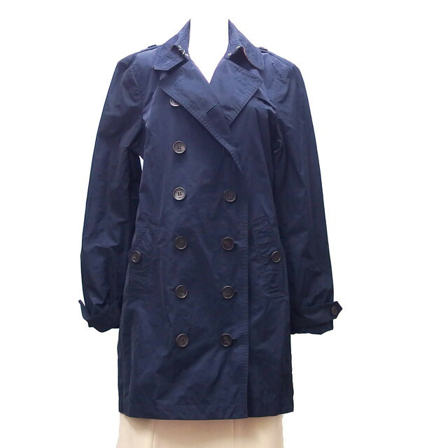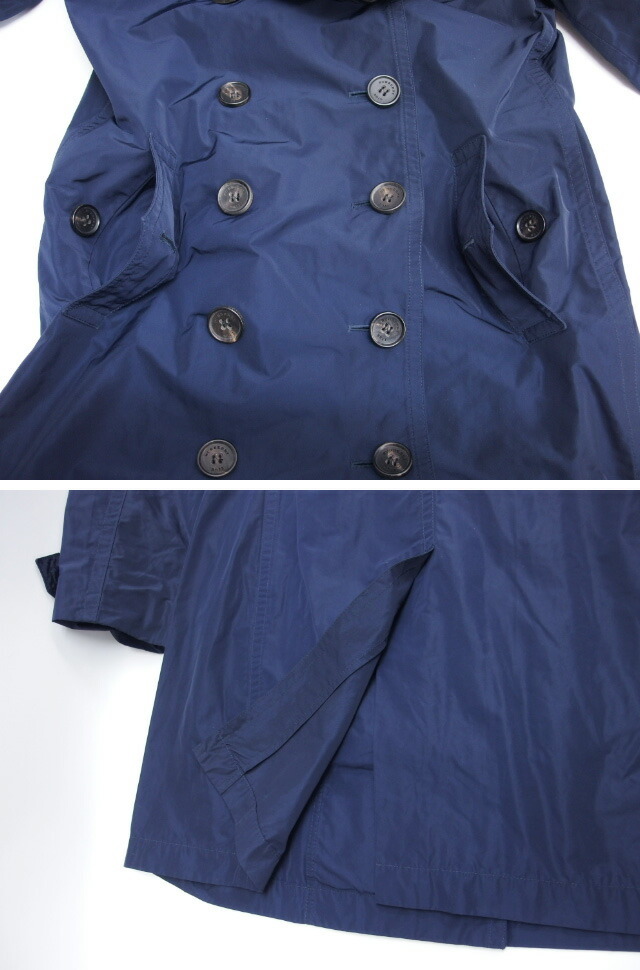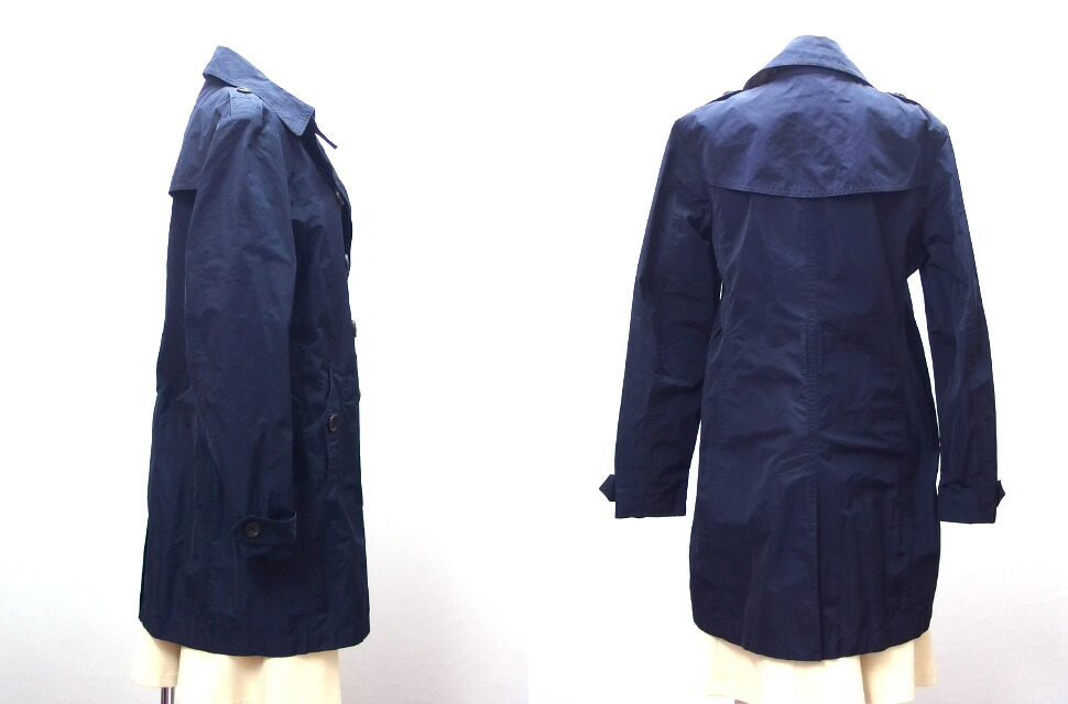| 商品名 | [訳あり]トレンチコート 長袖 アウター ミドル丈 ネイビー(紺) サイズ44 L~XLサイズ ボタン開閉 前開き バッグスリット フード・腰ベルト無し レディース |