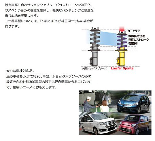 | 商品説明 | KYB LowferSportsは、ダウンサスに適した、 乗り心地の良いショートストロークのショックです。 ダウンサスを組むと車高は下がりますが、 ショックも標準車高の状態から、数センチ縮んだ状態となります。 そのため縮み側のストロークがその分減ってしまい、 ショックの底付きを起こしやすくなります。 路面からの急な衝撃は通常バンプラバーが吸収しますが、 吸収しきれない場合はショックのロッドがケースの底にぶつかり、 最悪ショックが壊れてしまいます。 そんな心配が付きまとうローダウン車には、 この「KYB LowferSports」がおすすめです。 ダウンサスにあわせてストロークを短くし、 底付きしにくくなっております。 また純正ショックよりも減衰力も上がっておりますので、 柔らかいダウンサスを入れても、車がふらつきにくくなります。 もちろんただ硬いだけでは乗り心地が悪くなりますが、 KYBの技術により、快適な乗り心地を実現しています。 車高を下げたい、でも乗り心地が心配・・・ スタイリッシュにしたいけど、車高調は高い・・・ そんな方にお勧めです。 **Cあるいは**Pから始まる品番のものは、カートリッジタイプとなります。 純正のストラットを分解して、カートリッジを挿入するものとなりますので、 ケース上部がかしめられている非分解式ストラットには使用できません。 また見た目はただの棒状のショックとなります。ご注意下さい。 LowferSportsにはTEMSやECSなどの電調機構及び、セルフレベライザー機構はありません。 その機能がある車に装着した場合、機能は使用できなくなります。 出品内容は、以下となります。