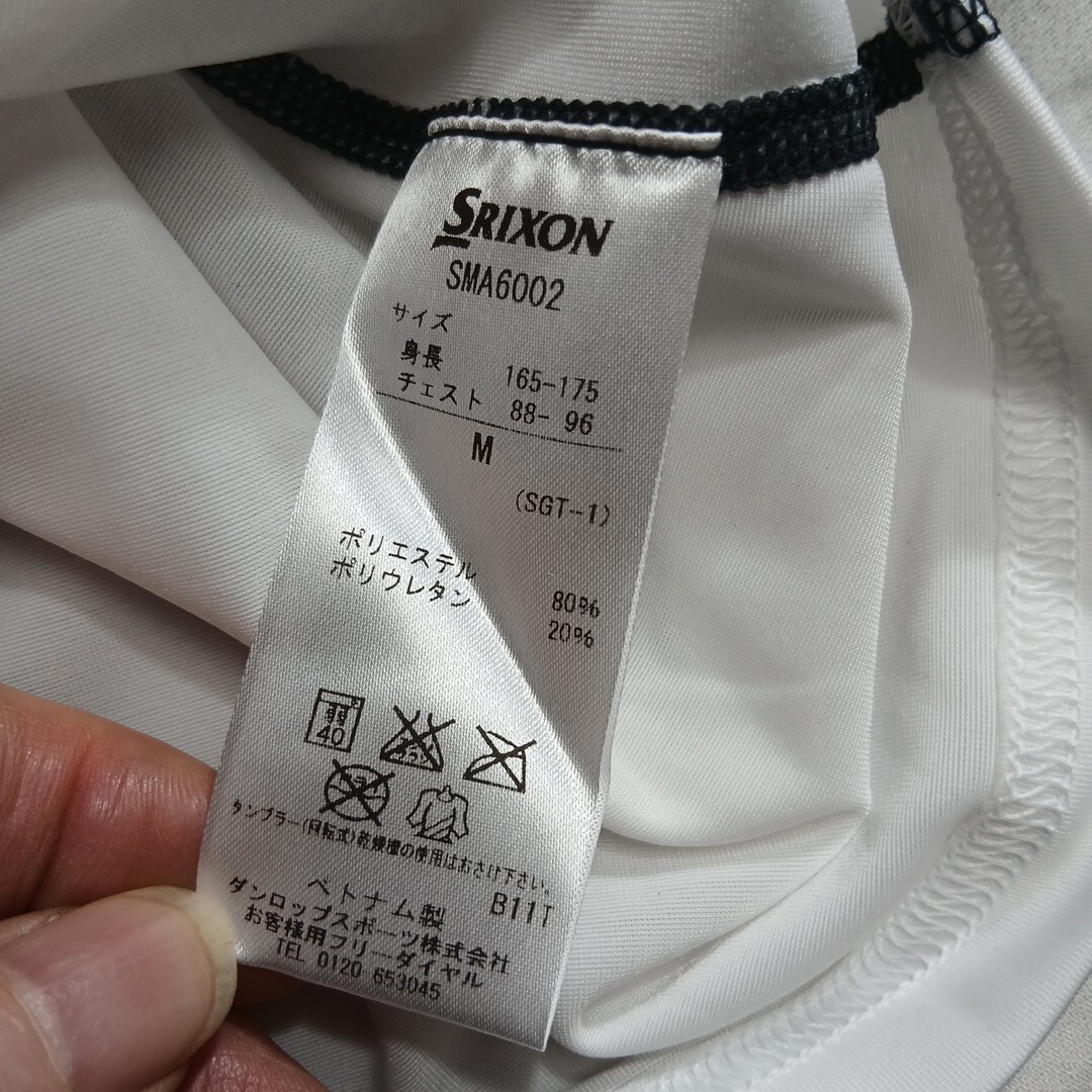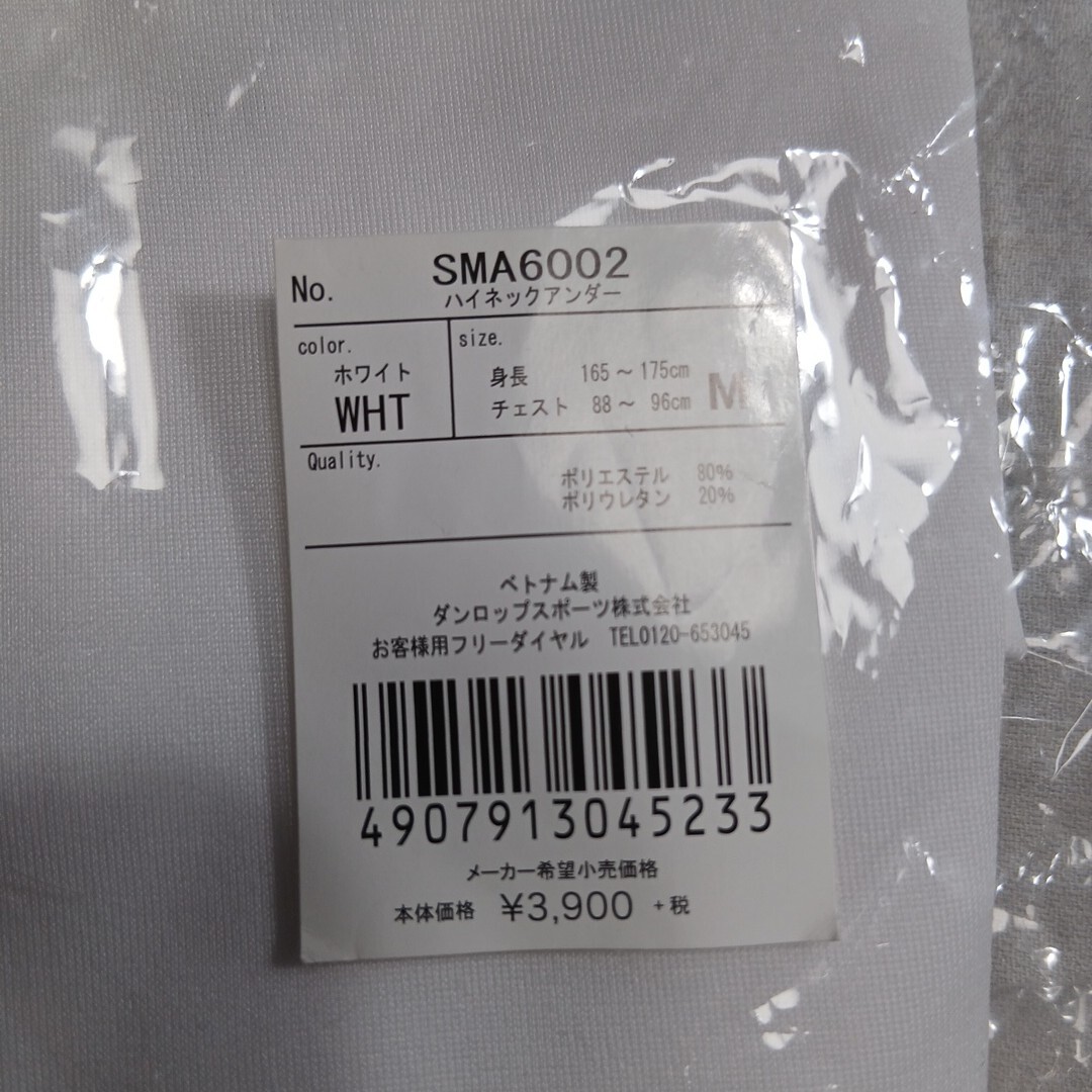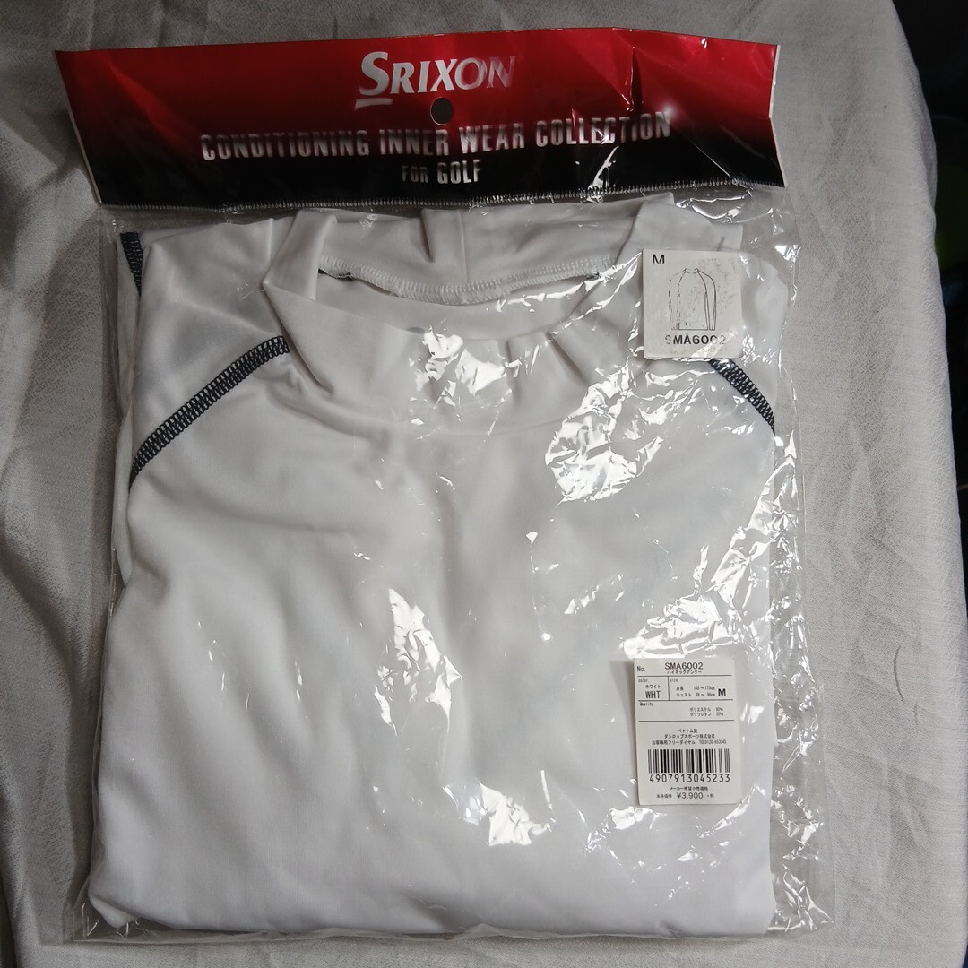 スリクソン(ダンロップ)のハイネックアンダーです。サイズはMで、身長165~175センチ、チェスト88~96センチです。素材は、ポリエステル80%、ポリウレタン20%です。色は、ホワイトです。未使用ですが自宅保管品です。