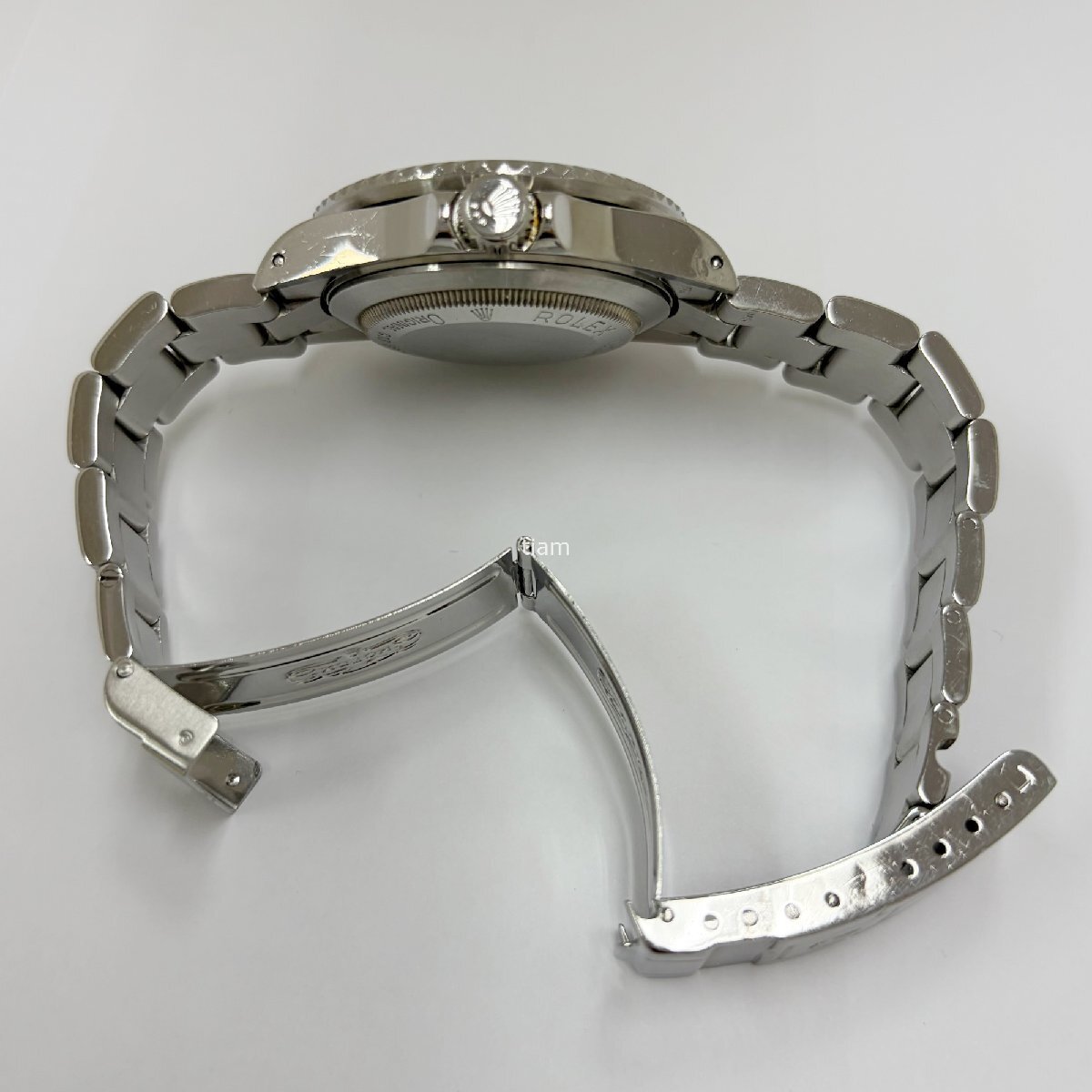| ガラス: 目立つ傷はございません。 ダイヤル/針: 目立つ傷はございません。 ケース/ベゼル: ケースサイド、裏に傷が多くございます。ベゼルディスクに傷が多くございます。 ブレス: ヨレがございます。12時側フラッシュフィットが外れにくいです。 その他: | ||