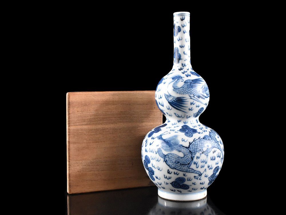 | 商品名 | 【雲】某資産家買取品 中国古玩 唐物 染付鳳凰麒麟文 瓢箪型花瓶 飾壷 高さ22cm 箱付 古美術品(徳利旧家蔵出)CY857 OTftes |