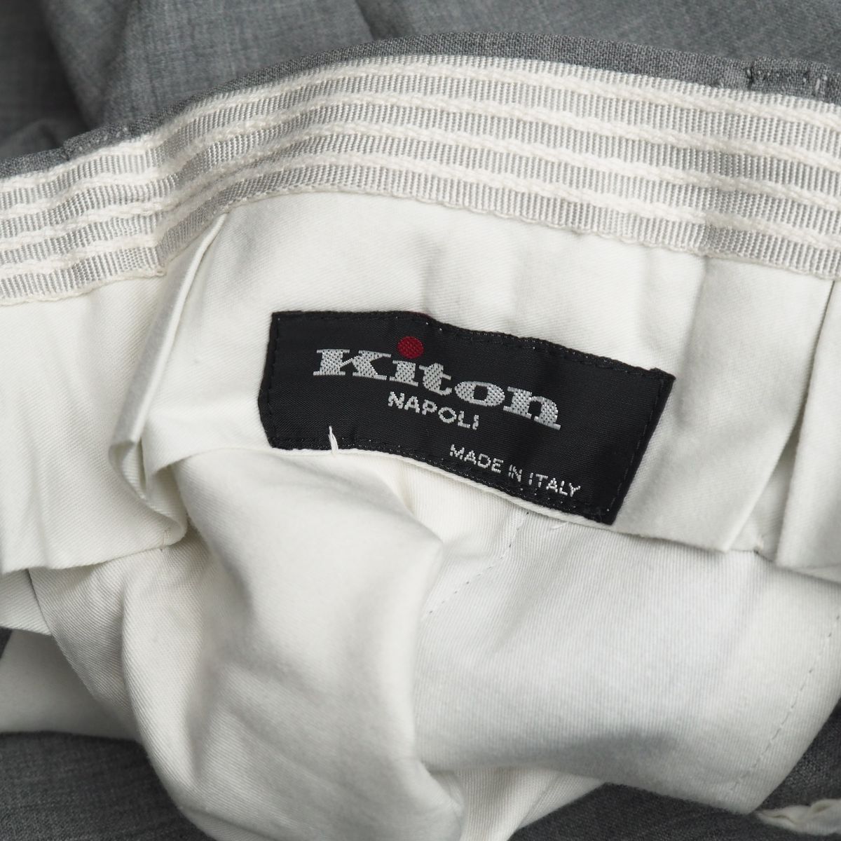 1968年にナポリで創業したクラシコイタリアを代表するブランド、『Kiton/キートン』の一着。 さらりとした手触りを持つウール生地で形成された、ノータックスラックスです。