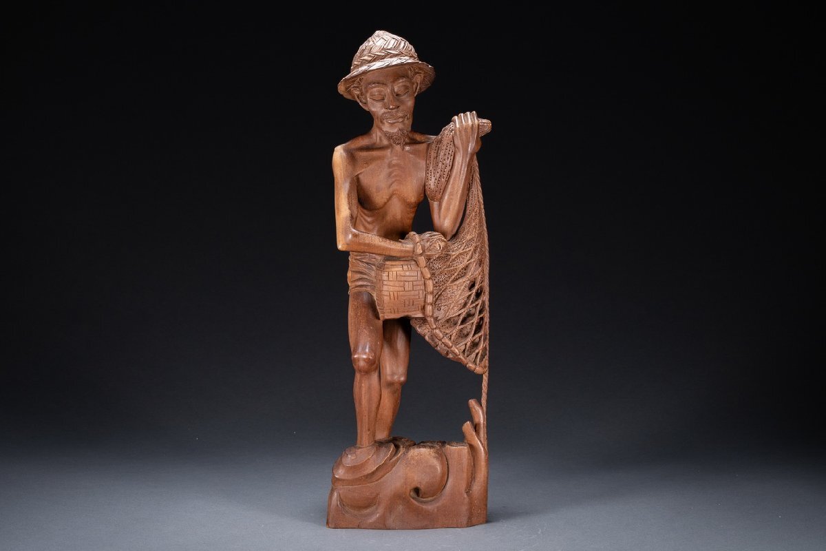 【雲錦】某有名オークション購入 時代物 木彫り 人物紋彫り物 古置物 古擺件 古美術 時代コレクション7L10-86S02