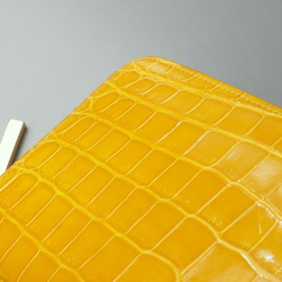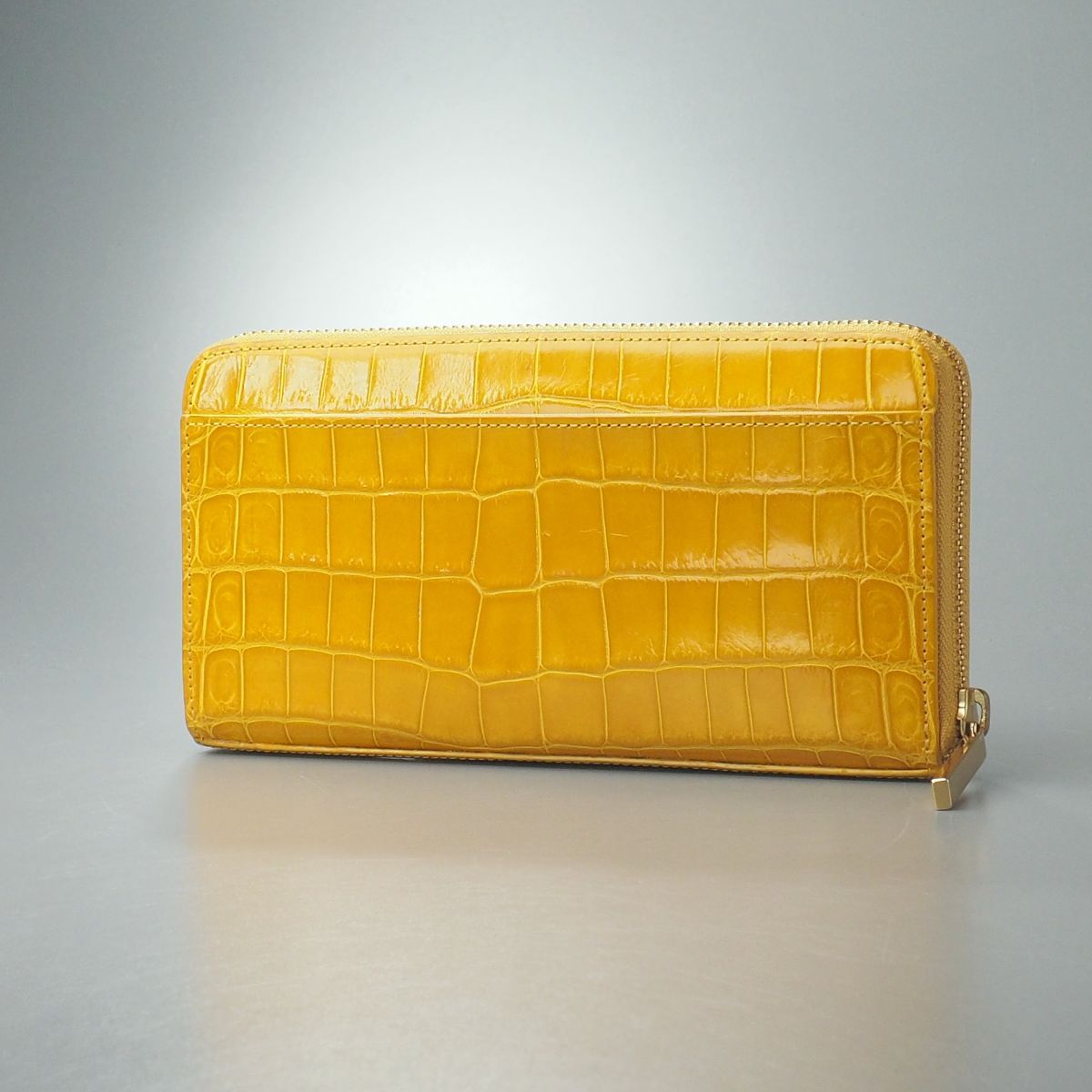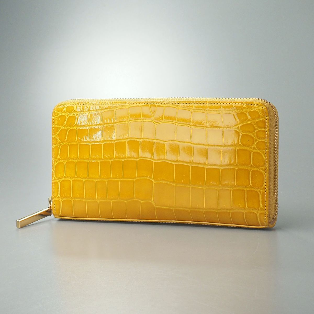 | GS5531//*傳濱野/den HAMANO*ルーチェクロコ/本クロコダイル/ワニ革/ラウンドファスナー/レザーウォレット/長財布/革財布/イエロー/黄色 | |||
