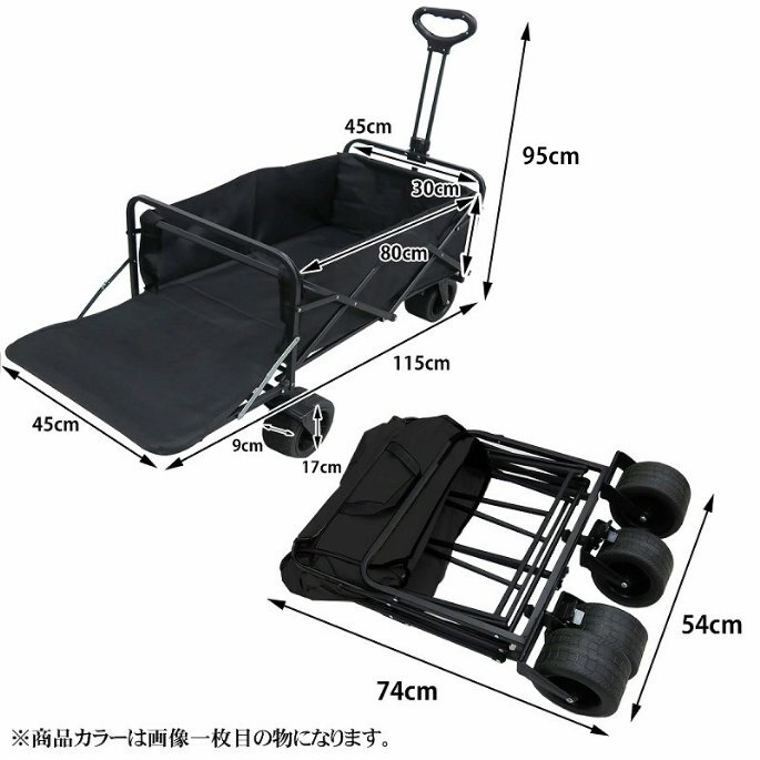 1円 アウトドアワゴン キャリーワゴン キャリーカート アウトドアワゴン 運搬用 後ろ開け 簡単収束型ワゴン 多用途 耐荷重100kg OH-27BK