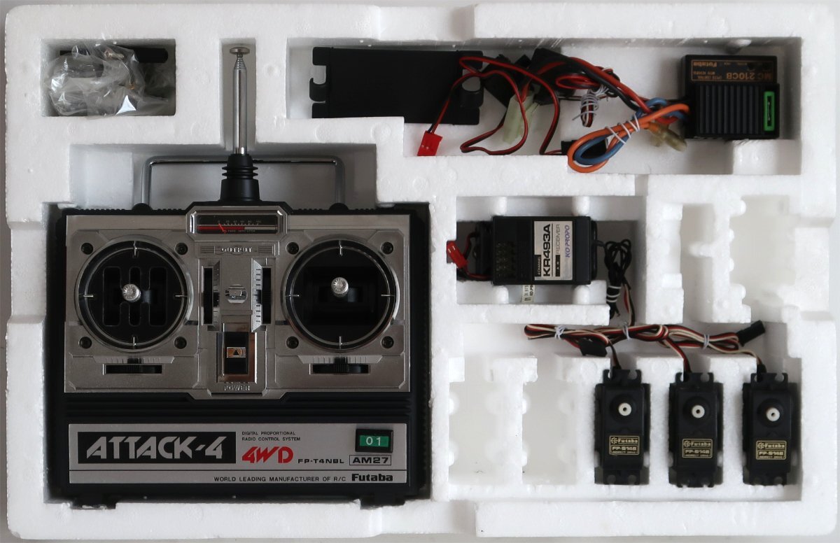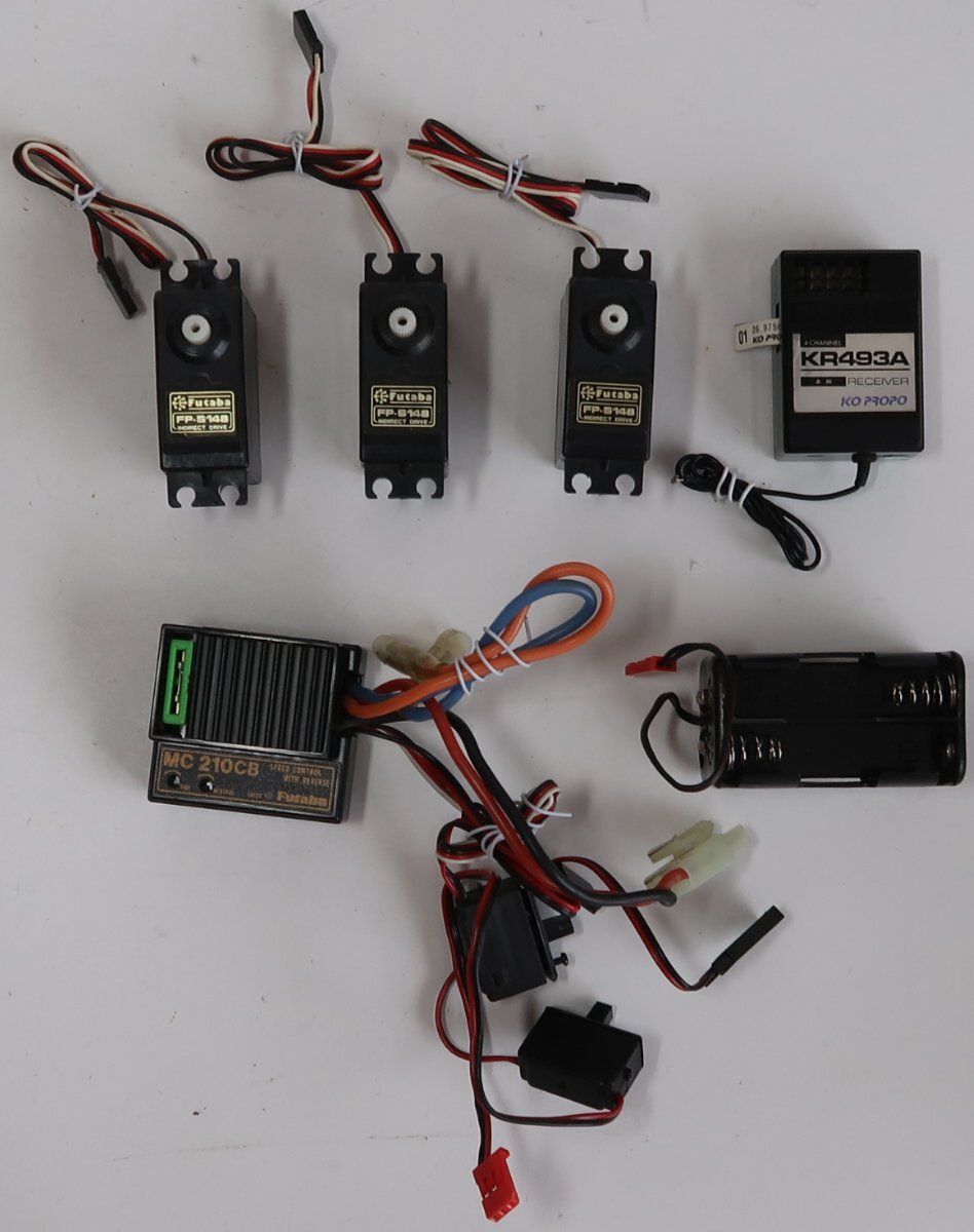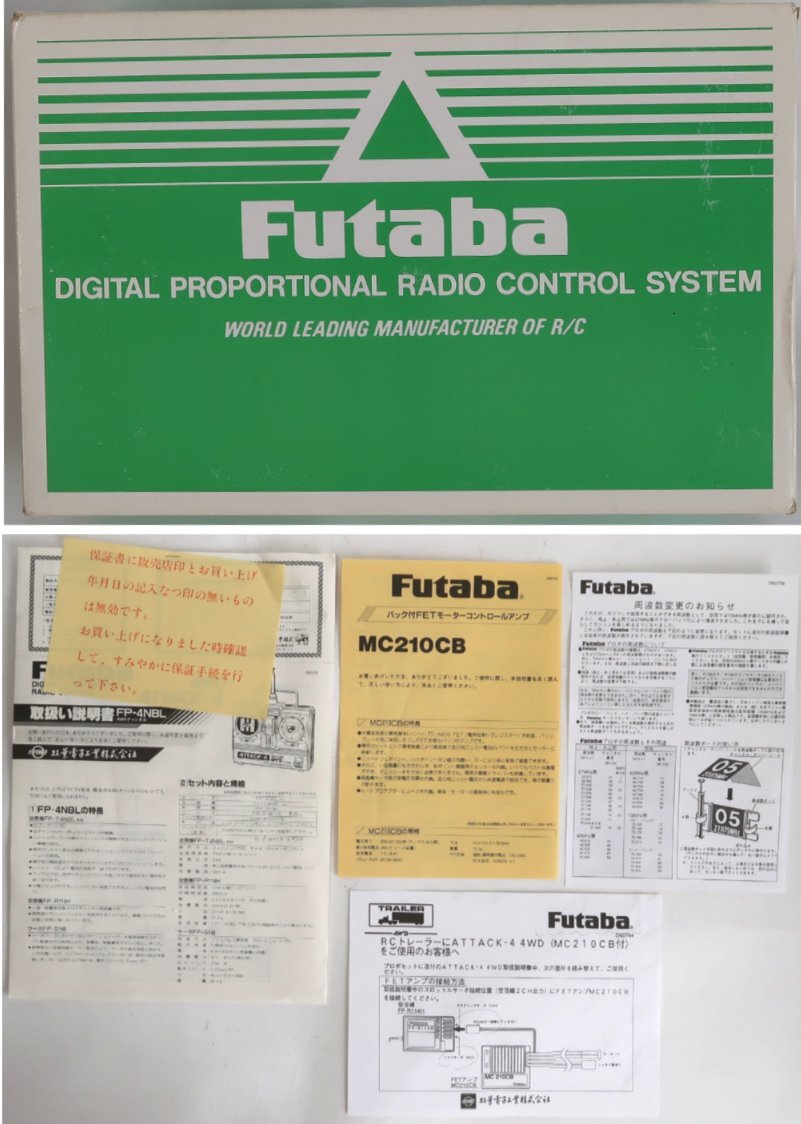 出品は画像の物が全てです。使用品ですので多少の汚れや擦れは有ります。プロポの状態は中古としてみれば綺麗な状態です。手に入れた時にプロポのみだったので受信機、サーボ及びアンプなど私の方で付属させました。受信機はKO製ですがコネクターも合いきちんと動作しております。サーボはFP-S148です。アンプはMC210CBです。バンドは箱の記載の7ではなく1が付属します。テストしましたが操作はできましたし、問題なく動作しております。分かることは以上です。出品前にもきちんと基本的な事は問題ないかチェックした上で出品していますが、発送後になにか問題がありましてもサポートは出来ませんし、返品や苦情は一切受け入れられませんのでそれを納得した上で御入札下さい。