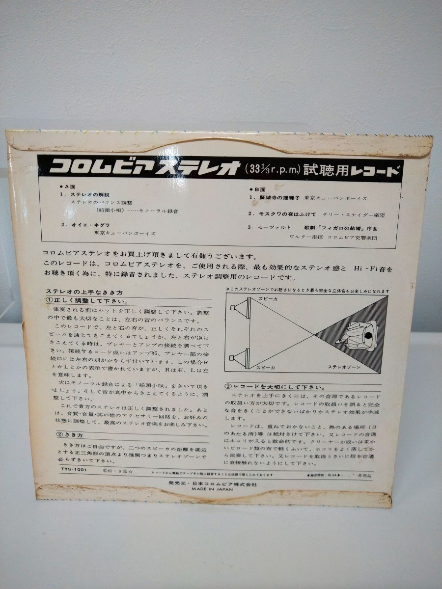 | 商品の状態 「形態」…非売品の視聴用レコードです。 「ディスクの状態」…ディスクに擦れ傷があります。再生には支障ありません。 「ケース・ジャケットの状態」…ジャケットに擦れ、汚れ、日焼け、シール跡があります。写真で確認してください。 「その他の付属品」… 記載のない付属品はありません。 *特に記載がない場合でも、通常の使用、再生には支障の無い程度のキズ、汚れがある場合がございます。 *画像に写りきらないキズ、汚れがある場合がございます。 *「処分品」「ジャンク品」として出品している商品は、再生不良を含め、一切のクレーム、返品、返金はお受けできません。ご了承の上入札、購入してください* | |
