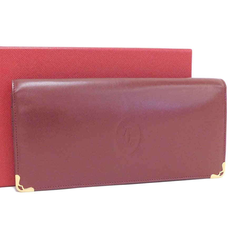 1円■美品/カルティエ/二つ折り長財布/ボルドー系/レザー/マスト ドゥ カルティエ/Cartier ■E.Cse.pS-12[中古]