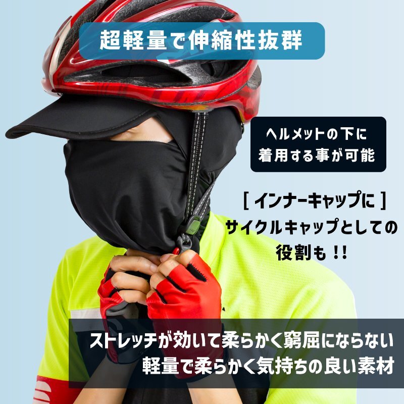 サイクルキャップとバラクラバを一つにしたツバ付きモデルのフェイスマスク。 スポーツシーンや屋外作業に最適な夏用バラクラバです。 サラっとした接触冷感生地で肌を露出するより涼しく快適を維持します。 吸汗速乾性と通気性にも優れており息苦しくなく汗などもの素早く吸汗し乾かします。 UVカットUPF50+で自転車などの長時間外で活動する時の紫外線による日焼け対策に。 目元以外は覆われるので日焼け対策にとても有効です。 ツバ付きモデルは日差しを遮り見やすい視界を確保。 自転車での活用だけでなくモータースポーツ、バイクでのツーリング、様々なスポーツや屋外活動、作業にお使い頂けます。 [UVカットUPF50+] 日差しから肌を守る。紫外線濾過率99%以上! 最高値のUPF50+で紫外線から肌を守り日焼けを防止します。 [つば付き] 幅広のつば(バイザー)は約7.2cm。 日差しを遮り見やすい視界を確保し、インナーキャップのような役割を期待できる。 キャプ風にする事でファッション性も向上。 [360度ガード] 首元も360度ガードできるので、忘れがちな首の後ろ側もしっかりと日焼け防止できる。 肌を覆う事で日に当たり体温の上昇を抑えます。 日に当たらないから肌を露出するより涼しい。 [接触冷感] 接触冷感でひんやりと気持ちいい着け心地。 マスク内の熱がこもる不快感を軽減し心地よさを持続させます。 水や汗で濡れると気化熱の作用により冷却効果を。 [吸汗速乾性と通気性] 通気性に優れているので長時間つけていても息苦しくなくスポーツを楽しめます。 吸汗速乾性、汗を掻いてもすばやく吸収する吸汗速乾の生地でスポーツ時でも速やかに汗を吸収。 吸収した汗を蒸発させ乾かします。 [インナーキャップに] ヘルメットの下に着用する事が可能。サイクルキャップとしての役割も果たします。 [超軽量で伸縮性抜群] ストレッチが効いて柔らかく窮屈にならない。軽量で柔らかく気持ちの良い素材で涼しく。 ヘルメットインナーに。 [様々なシーンで使える] ツーリング、バイク、自転車、アウトドア、釣り、山登り、ヘルメットのインナーなど様々なシーンに。 またスポーツだけでなく屋外での作業などにとても重宝します。 [フリーサイズ] メンズ、レディース共に使えるフリーサイズ。 商品内容キャップ付夏用バラクラバ 素材88%ポリアミド、12%スパンデックス サイズフリーサイズ(メンズ、レディース兼) 大人向き 寸法全長約34cm、下幅約32cm、バイザー約7.2cm、頭周り約58-61cm (伸縮性あり、伸縮範囲+5-8cm) 重量軽量56.3g 《ご注意》 ・商品は入荷によりキズがある場合があります。 その場合、保証対象外になりますのでご了承お願い致します。 ・ディスプレイ環境により実物と色が異なる場合が有ります。 ・入荷時期により予告無く一部仕様変更する場合が有ります。 |