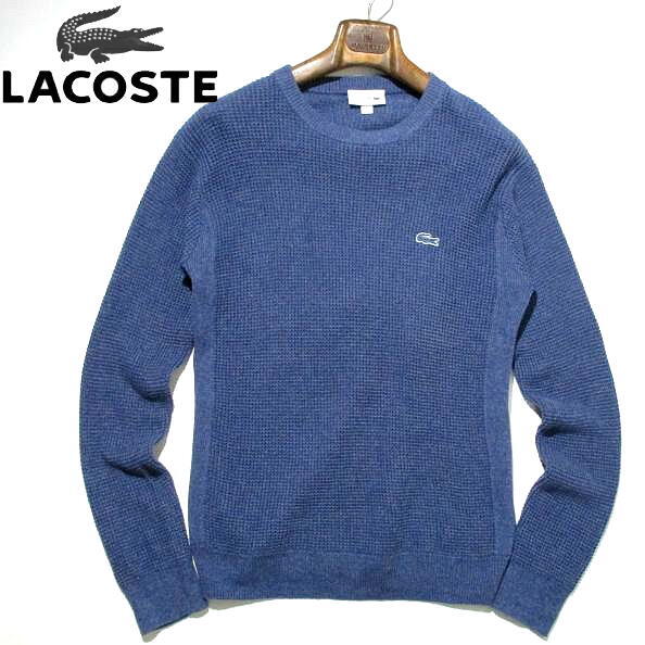 定価19800円▼ ラコステ クルーネックニット セーター ワッフル編み 3 Mサイズ LACOSTE 同色ロゴ ネイビー ブルー メンズ [浏览原始页面]