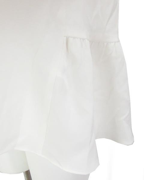 | コンディション | フロントネックに薄汚れ、右袖内側に線汚れ、と右袖先に薄い青線汚れ、右サイドフリルに薄点汚れがありますが、着用感は少ないです。 |