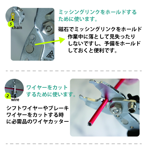一つの工具で5機能もの工具として使える、優れた自転車用工具です。 | |