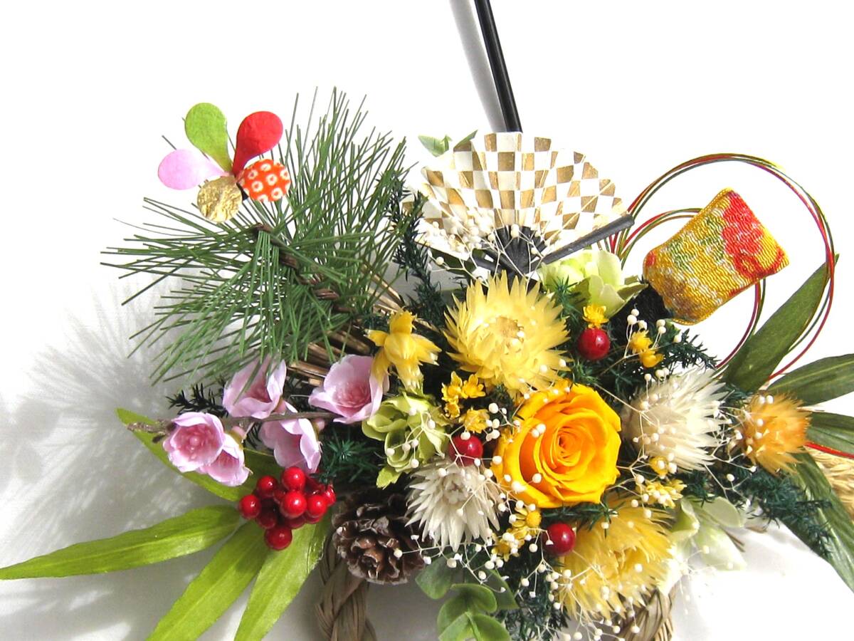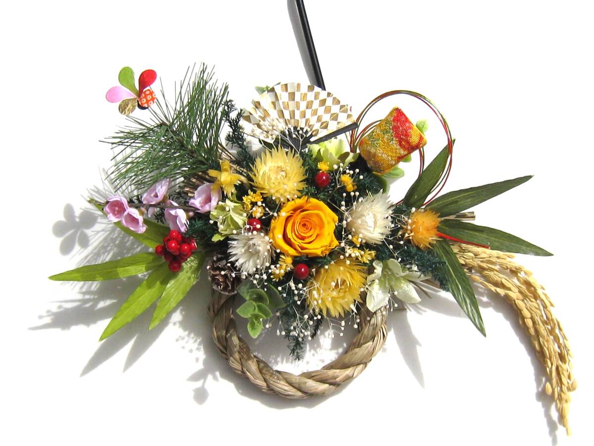 稲穂付き丸締めベースに松竹梅、千両、プリザーブドの薔薇、シルバーデージー、黄、| 出价者 | 信用 | 价格 | 时间 |