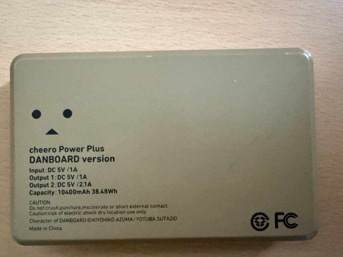 漫画『よつばと!』に登場するキャラクター「ダンボー」とコラボレーションしたモバイルバッテリー 「cheero Power Plus 10400mAh DANBOARD version」です。 10400mAhの大容量モデルです。 本体には、バッテリー残量を示す5段階のLEDインジケーターが搭載されています。 本体の充電には、Micro USBケーブルを使用します。 ダンボーの顔のデザインが特徴的 2つの出力ポートを備えており、複数のデバイスを同時に充電できます CHE-046 (cheero Power Plus 10400mAh DANBOARD version) ブランド:DANBOARD Version バッテリー容量:10400.0 mAh 重量(g):258.0 g USB Type-A ポート数:2.0 ポート 色:ブラウン系