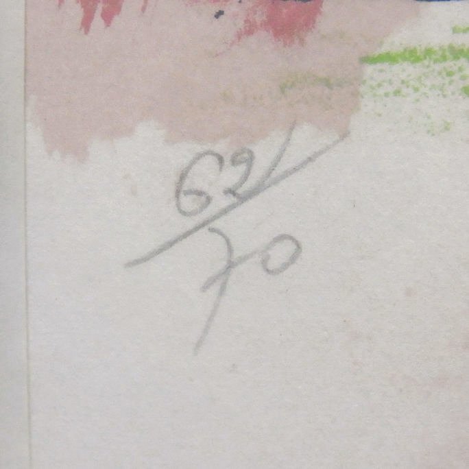 真作 グラハム・サザーランド リトグラフ 1968年 出現する昆虫 額装でございます。 【Graham Sutherland グラハム・サザーランド】 グラハム・サザーランドは、1903年にストリータムで生まれました。 彼はエプソムスクールに通い、ゴールドスミス・スクール・オブ・アート(1921-26) で美術を学び、すぐに熟練したエッチング職人になりました。 公式の戦争画家として、サザーランドはロンドンの爆弾被害を描いたが、 彼が本当によく知られるようになったのは戦後になってからだった。 彼は1960年に功労勲章を授与され、1980年にロンドンで亡くなりました。 彼の作品の中で、サザーランドは木の根やいばらの茂みなどの自然な成長形態に興味を持ち、 しばしばクローズアップや短縮された視点から描写しました。 これらの有機的な成長形成は、サザーランドのキャリアを通じて彼の仕事の中心であり続けましたが、 人間や動物のような特徴をほのめかして、しばしば威嚇的または脅威的に見えました。 詳しい説明は https://www.goldmarkart.com/collections/graham-sutherland をご覧ください。 出品の作品もサザーランドらしい題材の作品です。 マールボロファインアート発行。 フェルナン・ムルロ、パロで制作されました。 僅かにがヤケが見られますが、全体的に良好な状態のお品でございます。 経年保管のお品ですので、保管に伴う経年変化はご理解ください。 額には小傷がございます。 作中に「Sutherland」のサインを確認致しました。 お品寸約 絵寸 66×49.5cm 額寸 83×65.5cm でございます。 お品は保障させていただきますので、レブリカや贋作の類だった場合や 説明と違う状態だった場合は返品はもちろん、送料や振込み手数料を当店で 負担させていただきます。 どうぞ宜しくお願い致します。 ※出品者の齊藤商店は創業75年の美術商です。ホームページは【こちら】をご覧ください。(外部サイト) 他にもいろいろと出品しておりますので下記バナーをご覧下さいませ。 ![]() |