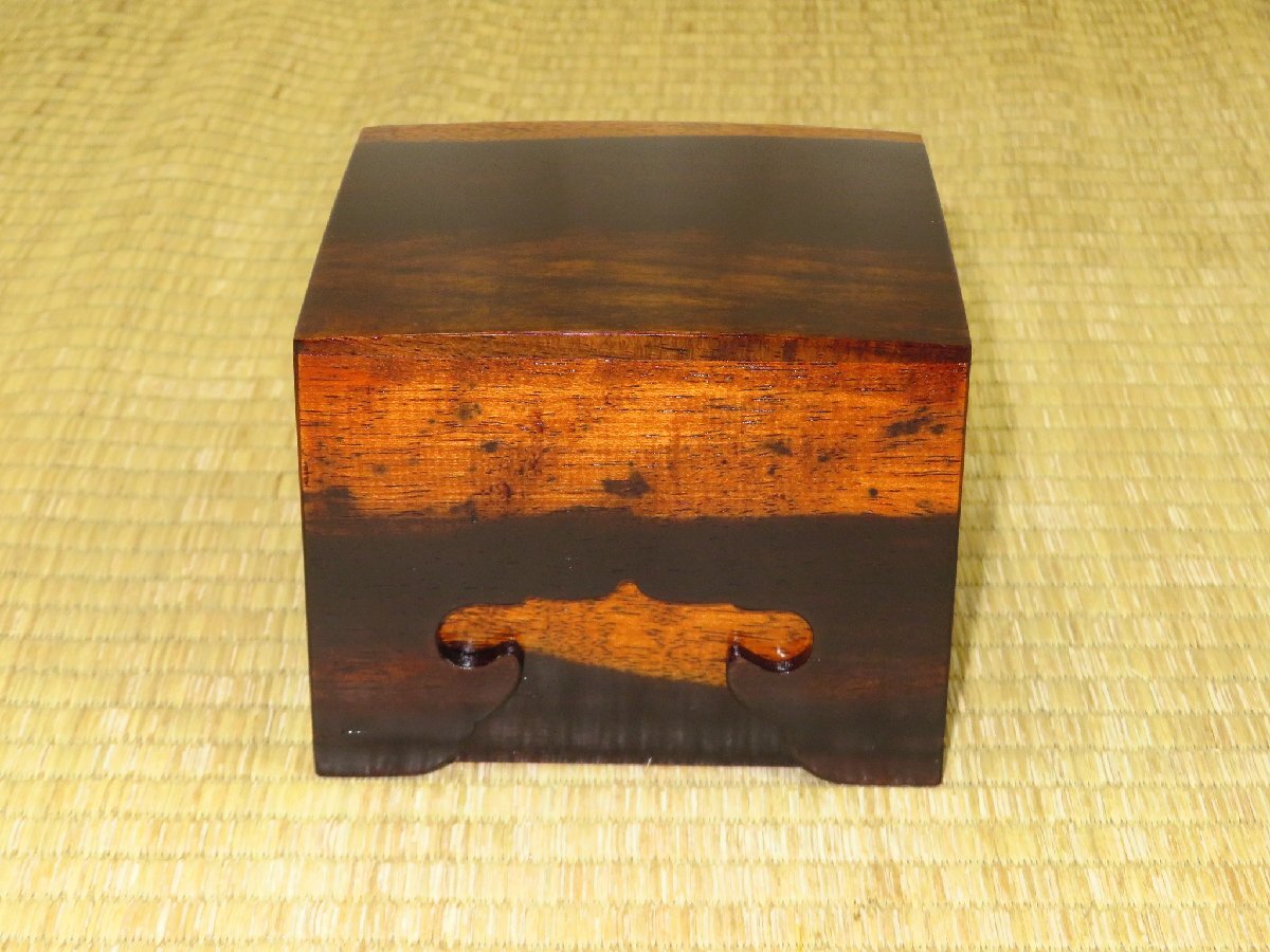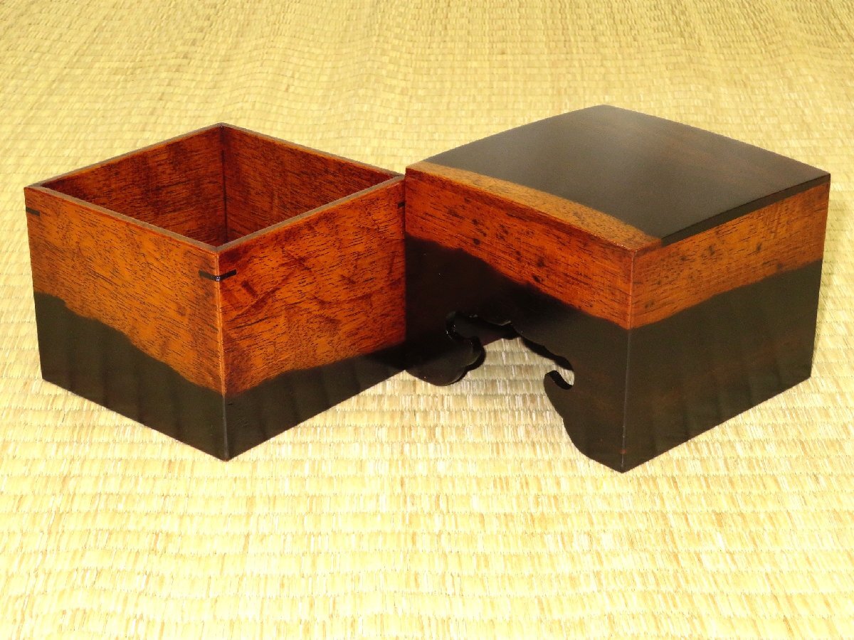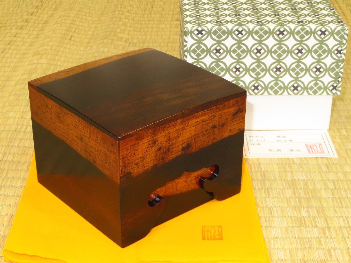 1000円スタート▲松浦清治作黒柿拭漆仕上四隅落将棋駒箱▲紙箱付/新品