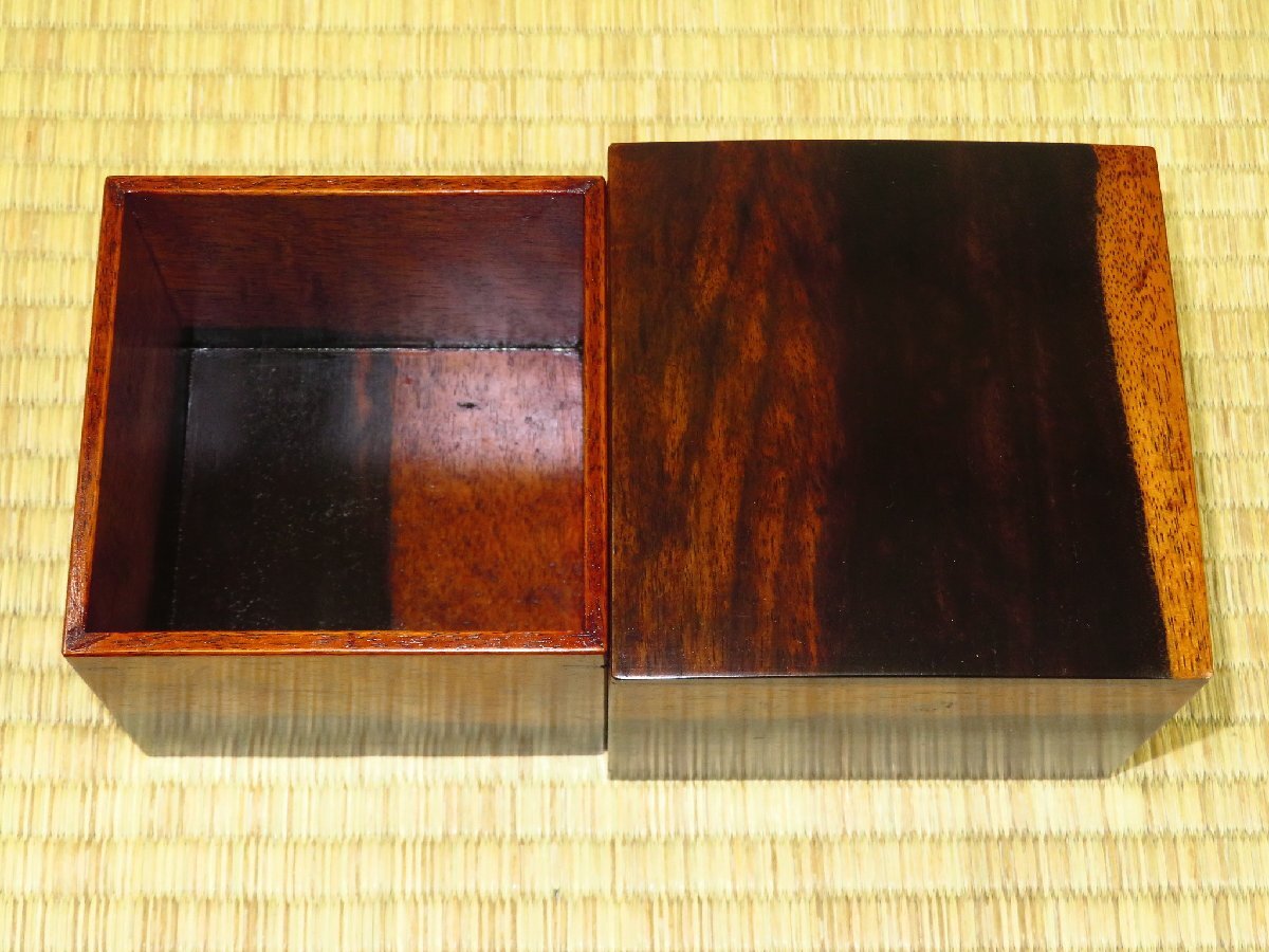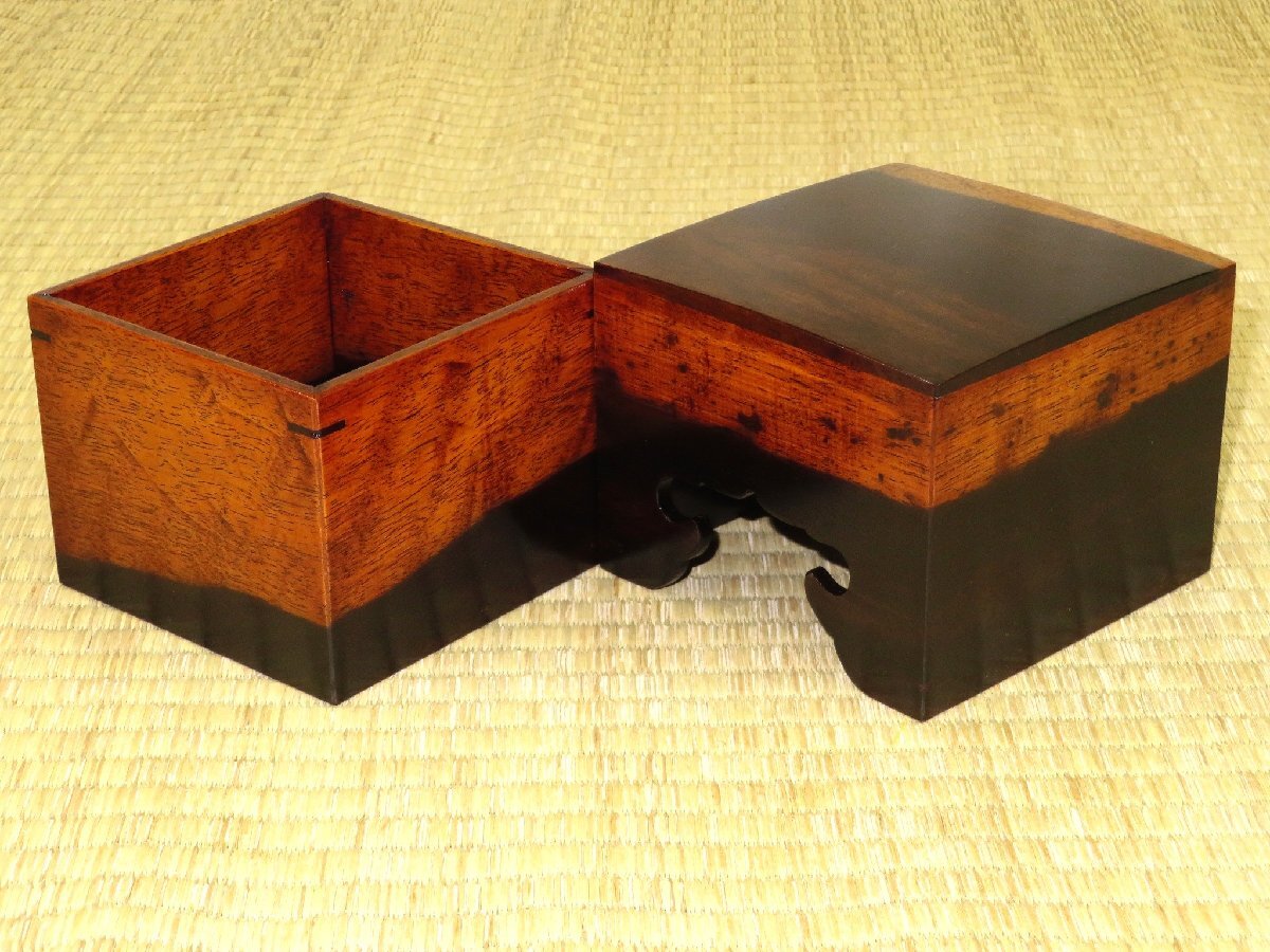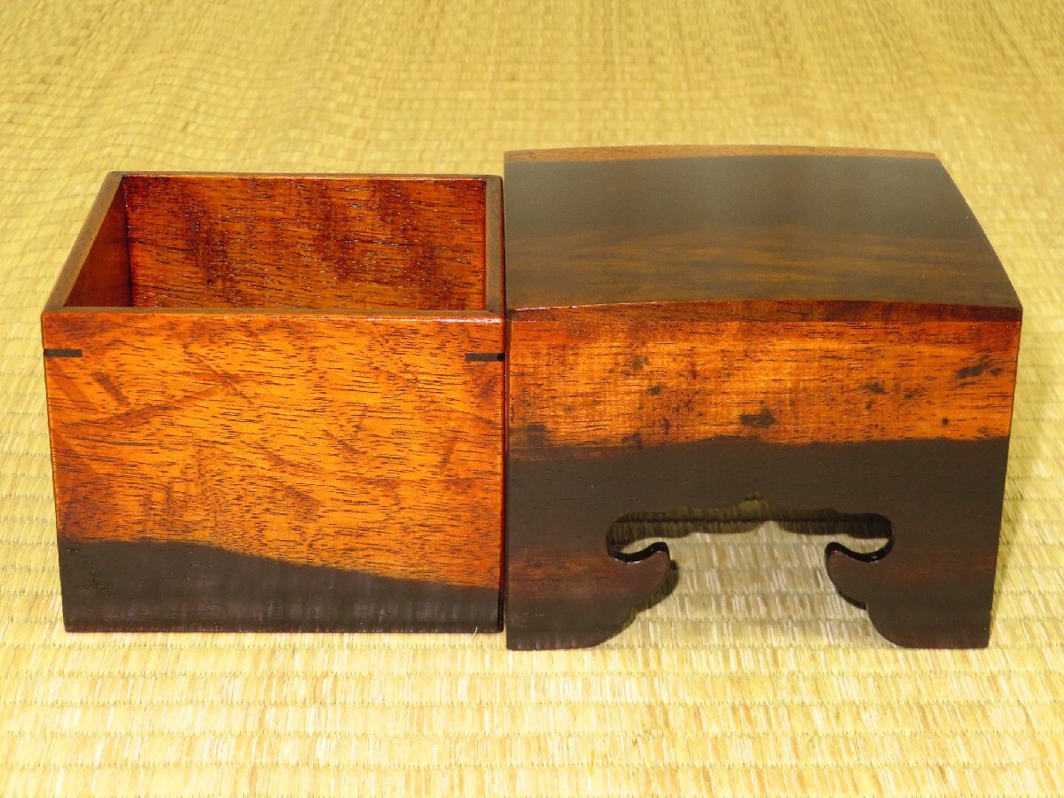 1000円スタート▲松浦清治作黒柿拭漆仕上四隅落将棋駒箱▲紙箱付/新品