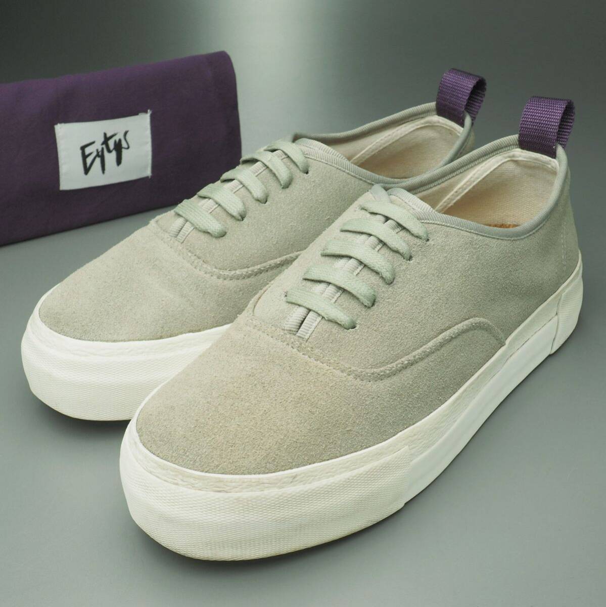 北欧スウェーデン、ストックホルム発のシューズブランド「エイティーズ/Eytys」の一足です。 淡い色味のスウェードをアッパーに用いたシンプルなローカットフォルムのスニーカー。 紫色のプルタブでアクセントを加え、ややボリューム感のあるラバーソールを装着し、シンプルに形取られております。 アウトソール:ラバー ライニング:キャンバス 付属:保存袋 ※撮影用のシューキーパーは付属致しません。 ※本物の商品ですのでご安心の上オークションをお楽しみ下さい。 ※タイトル頭の英数字は弊社の管理番号です。 ※ほかにも多数の商品を出品しています。 ※同梱に関しましては「まとめて取引」でのみ対応可能です、その他の方法での同梱対応は出来かねます。 (※商品の特性上、同梱対応出来ない商品もございますので予めご了承下さい。) |
