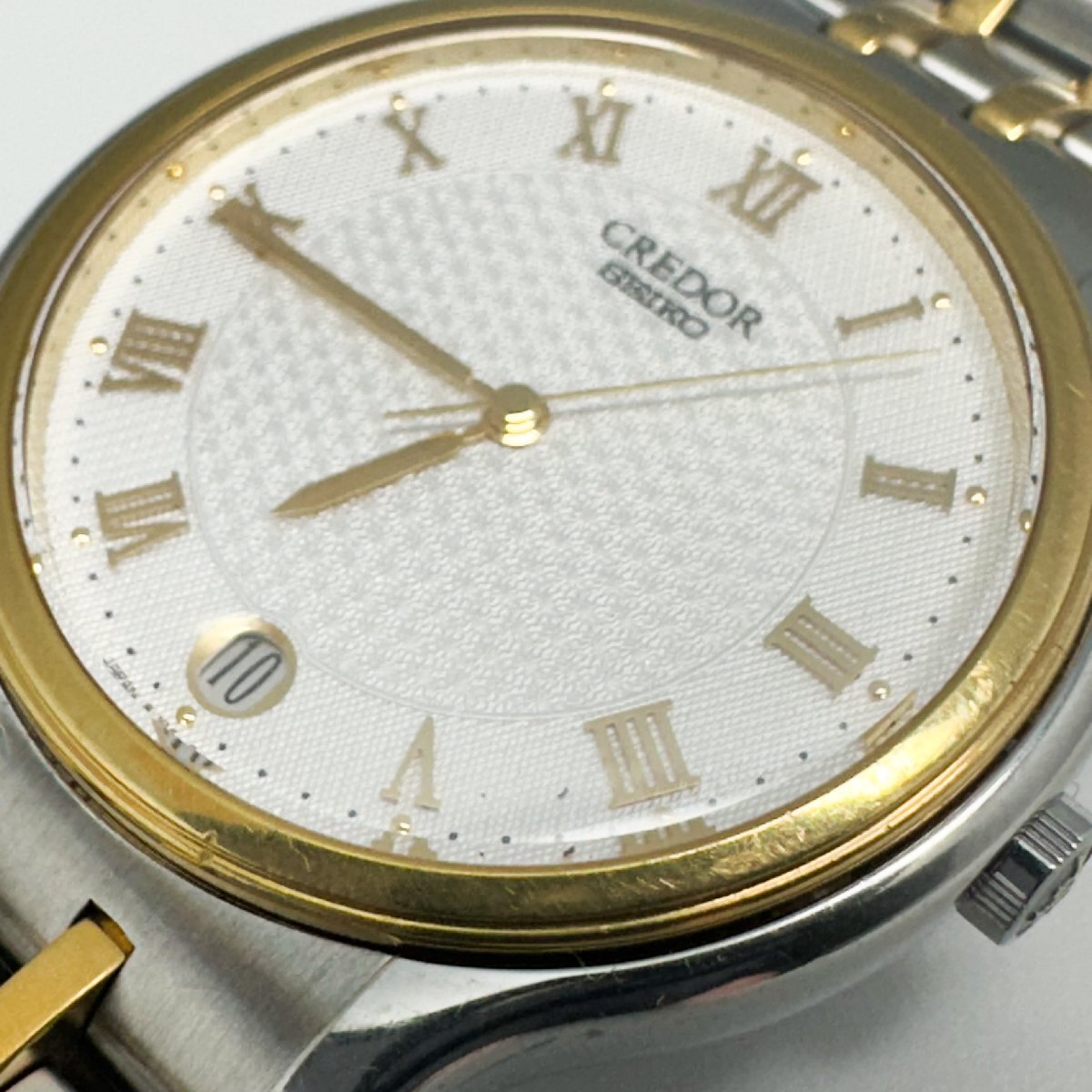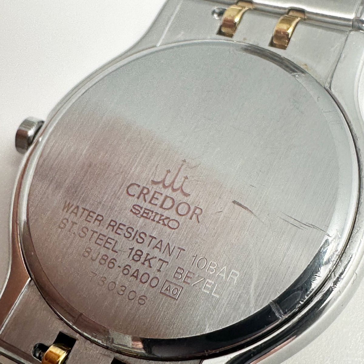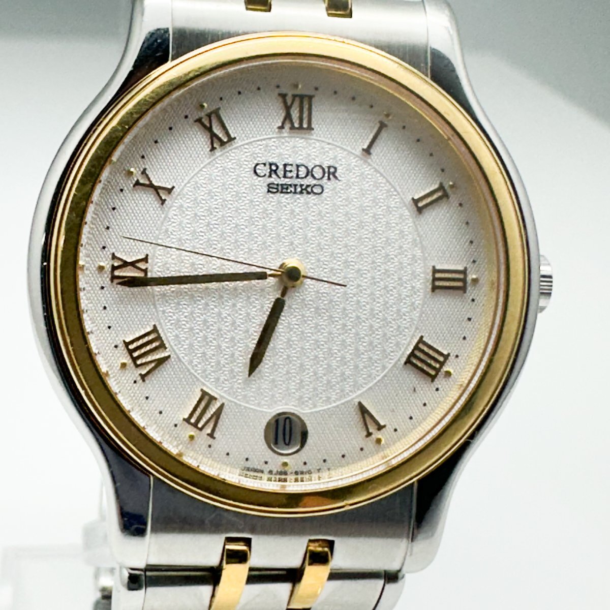 1円~稼働品 SEIKO セイコー QZ メンズ腕時計 CREDOR クレドール 8J86-6A00 デイト SS/18KT ベゼル ホワイト文字盤 ローマン数字 | |||