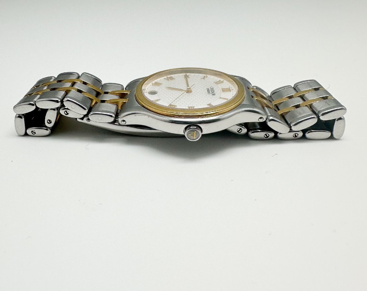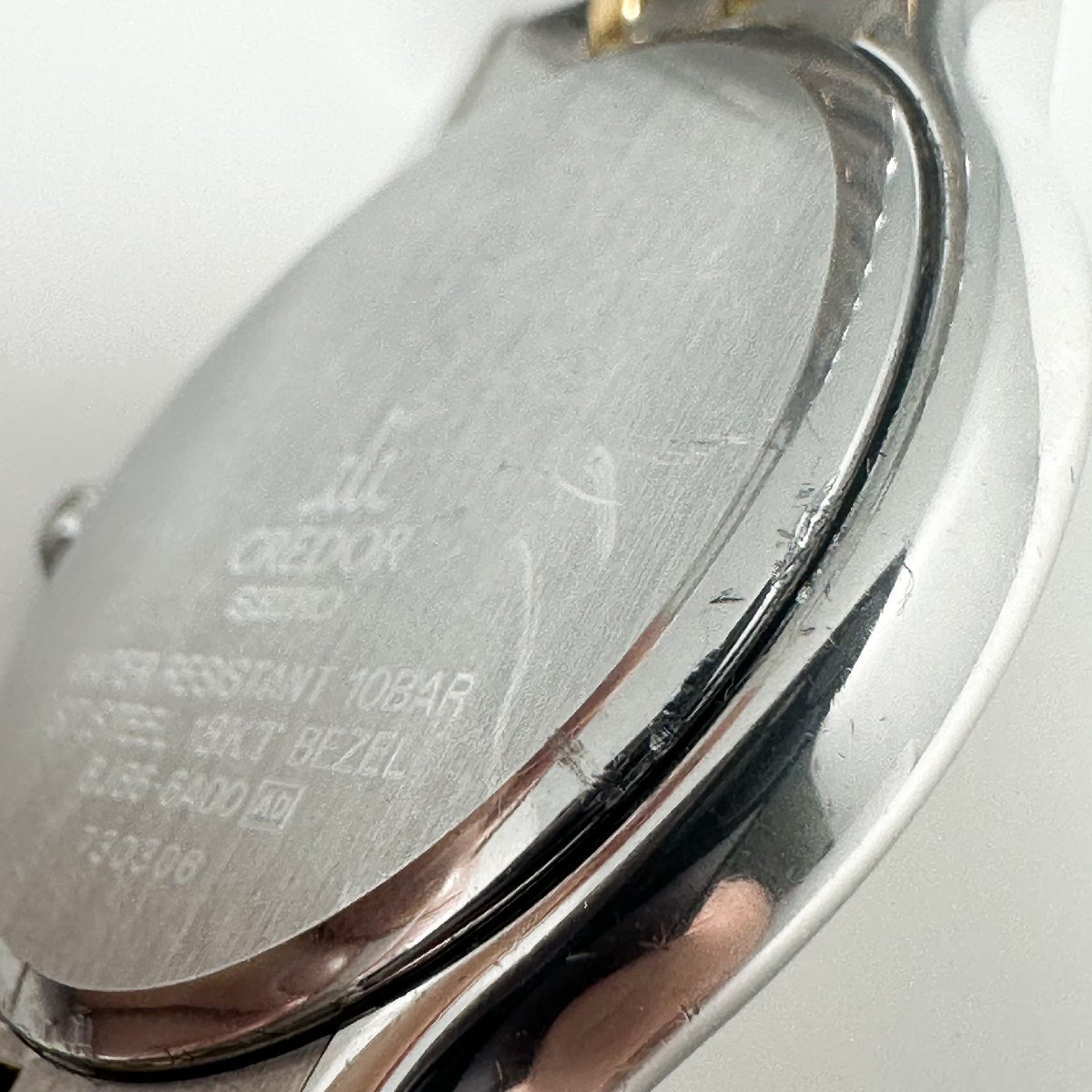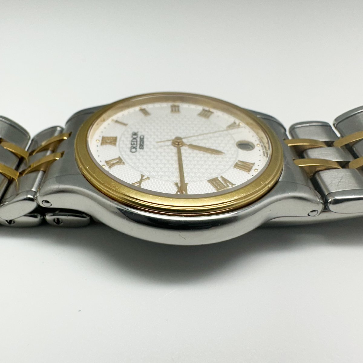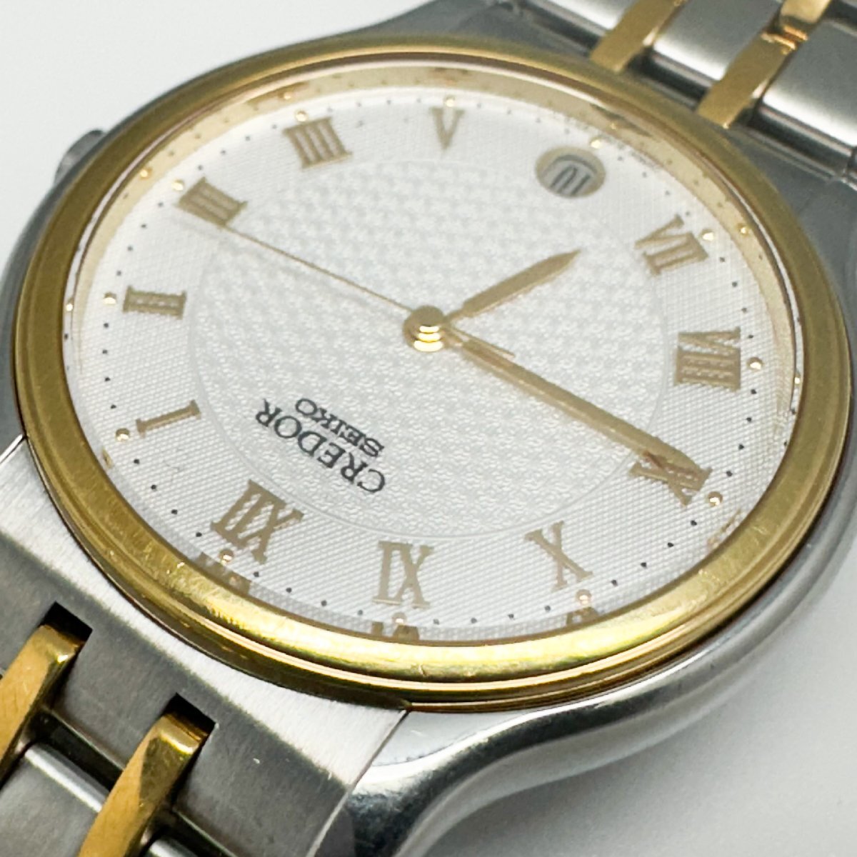 1円~稼働品 SEIKO セイコー QZ メンズ腕時計 CREDOR クレドール 8J86-6A00 デイト SS/18KT ベゼル ホワイト文字盤 ローマン数字 | |||