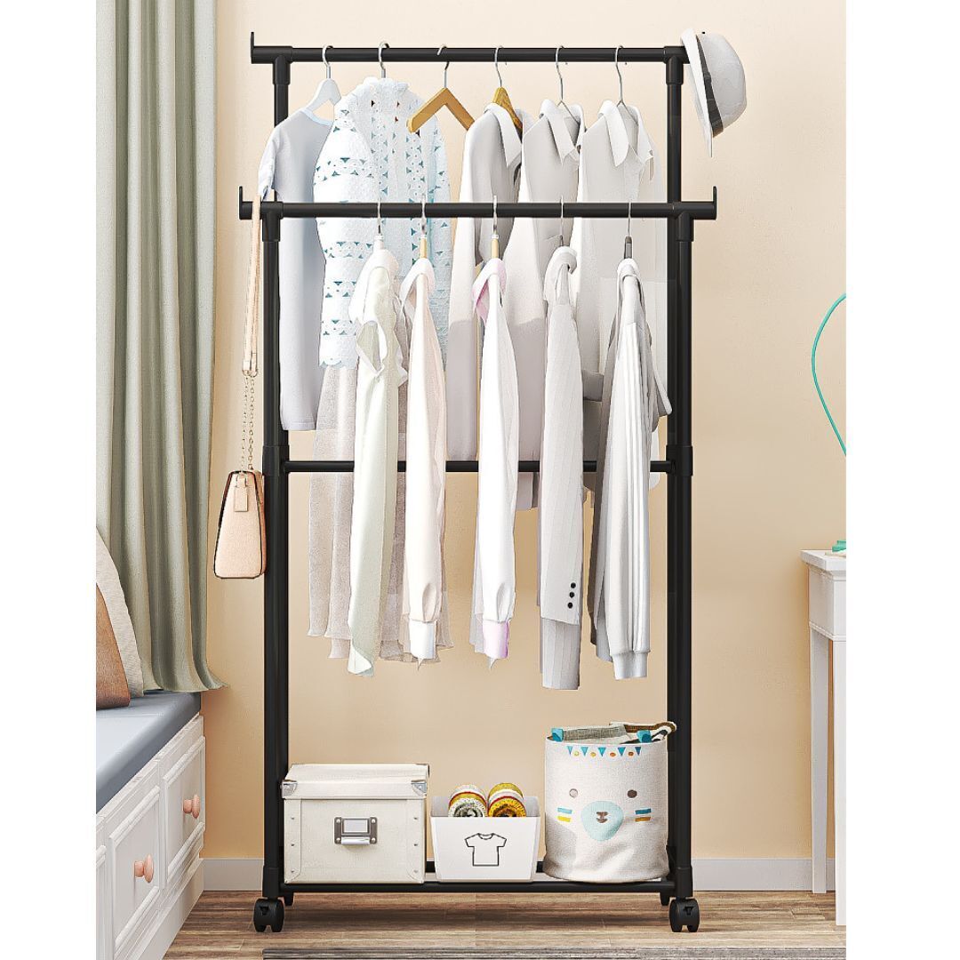 | ダブルハンガーラック 衣装ラック 洋服掛け 2列 組み立て 大容量 ブラック 黒 収納力抜群 室内干し 物干し 新居 引越し スペース |