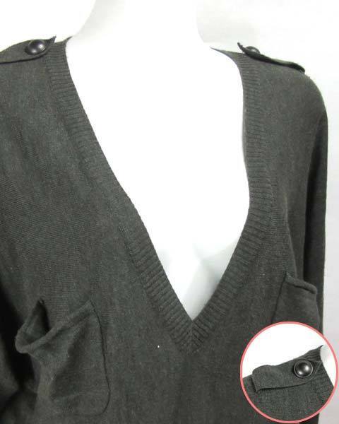 | ゆったりシルエットのカジュアルなニット。落ち着いたカーキ色で、デニムっカラーや黒やグレーなどコーディネートのお色を選びません。大き目にあいたVネックなので、キャミソールからタートルまであわせて頂けます。 |