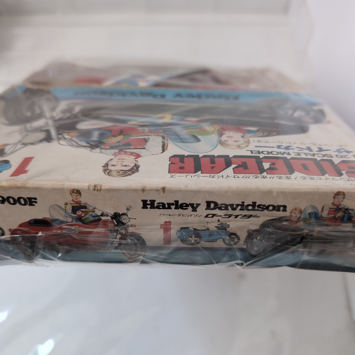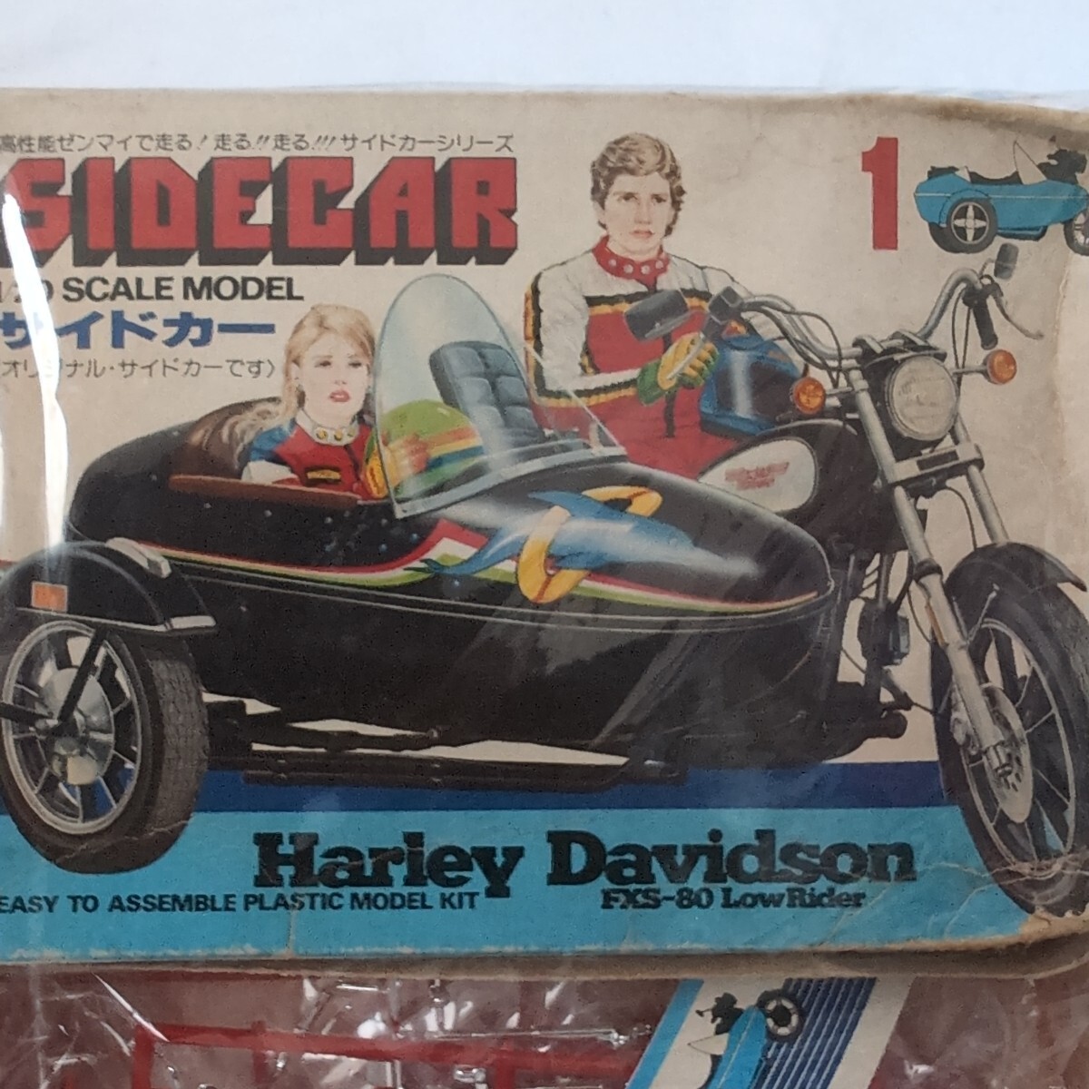《the Seventies》70年代当時の商品になります。! 懐かしい響きでもありますが、ゼンマイで、走るそうです。(高性能)表示です。東京都足立区に有った、(有)河合商会製だそうです。ハーレーの方は、FXS-80のローライダーで、サイドカーの方が、オリジナルだそうです。メッキパーツや、デカールも付いて、全て、はめ込み式ですが、弱そうな所は、接着剤で、補強してください。と、書かれております。(接着剤は、入っていません)。50年以上(半世紀以上)前の、当時未使用品です。外箱が、あちこち傷んでおりますが、肝心の中身は、当時のままをキープ出来ています。 なのですが、完璧を、お望みの方々の、ご入札は、固く、お断りさせていただきます。ノークレームノーリターンでのお取り引きを、お願いいたします。 送料は無料です。