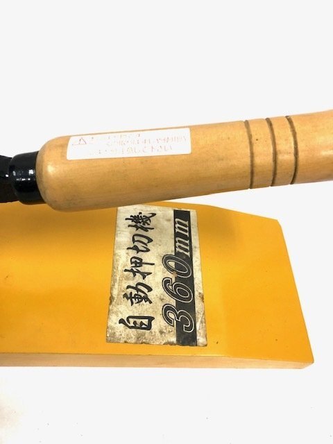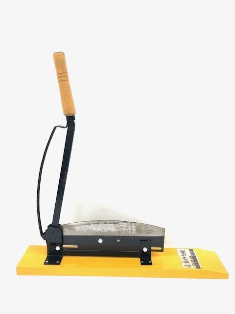 | 商品説明 ワラ切り、野菜の根切り、切花に最適です。 長さも360mmと長く、使い勝手の良いお品です。 詳細 ●サイズ:土台高さ3cm長さ67cm幅12cm 刃長さ36cm高さ11cm 重量4.46kg ●素 材:木・金属 ●動 作:動作確認済み ●ランク:Cランク ●コンディション:刃に多少の錆びつき有り。使用に問題はありません。 |