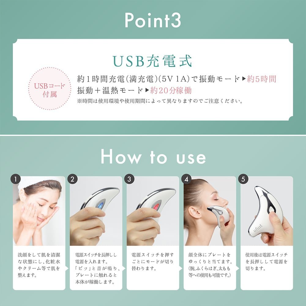 振動モード、振動+温熱モードでフェイス&ボディをトリートメント |
