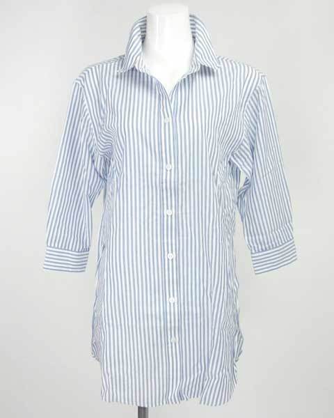 | クイーンズコート QUEENS COURT ブルー白ストライプブラウスシャツ 2 |