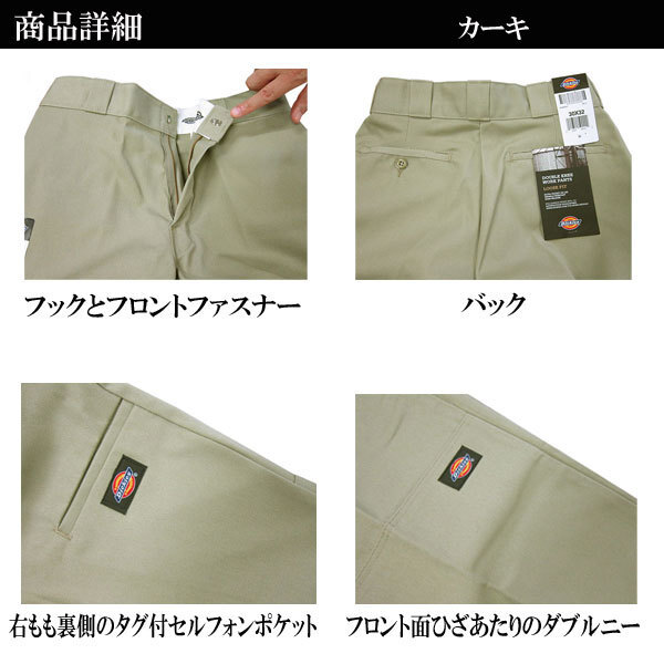 股下32インチ Dickies(ディッキーズ)85283 ダブルニー ワークパンツ カーキ(KH) ウエスト34インチです。 ■素材 ポリエステル65% コットン35% ■サイズ(約cm) 34インチ ウエスト88cm ヒップ116cm もも周り68cm また上31cm 裾幅26cm ■特徴 丈夫で実用的な人気パンツシリーズ・「ダブル・ニー」シリーズ ☆シルエットはやや太目ルーズフィットで、膝の部分が2重になっており、非常に耐久性に優れています。パーマネントクリーズラインで、ノーアイロン。右足には便利な携帯電話等が入るマルチポケットつき! ホックスタイル、ジップ仕様 ※レングス(股下)は32インチ(約81cm)になります。<BR> ■注意事項■<BR>画像のタグはブラックですが生産ロットによりタグがカーキもございます。気にされる方は落札前にご質問下さいませ。 | |||||
