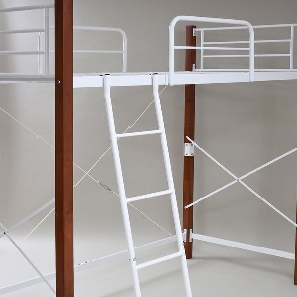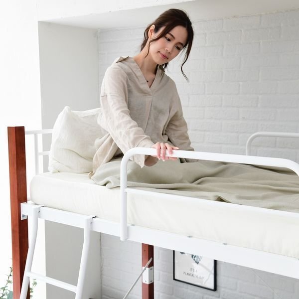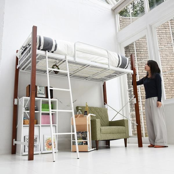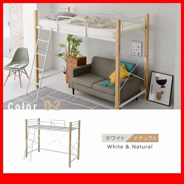 | 温かみのある天然木とクールなスチールのコントラストがおしゃれな、 お部屋のスペースを有効活用できるロフトベッドです。 ベッド下のスペースにはデスクを置いたりソファを置いたり、 生活空間の一部としても十分使える高さが確保されています。 お部屋の雰囲気にあわせて4カラー展開が嬉しい! |