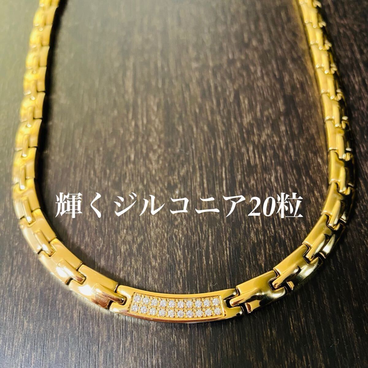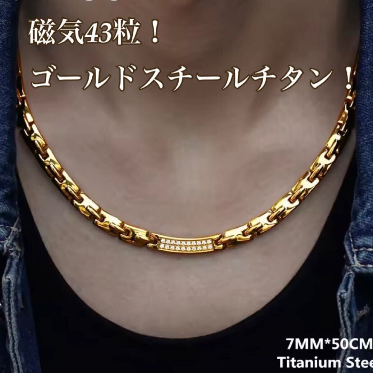 純チタン含有のスチールゴールドチタンネックレスに強磁気なんと43粒付いた人気のチェーンネックレスです。