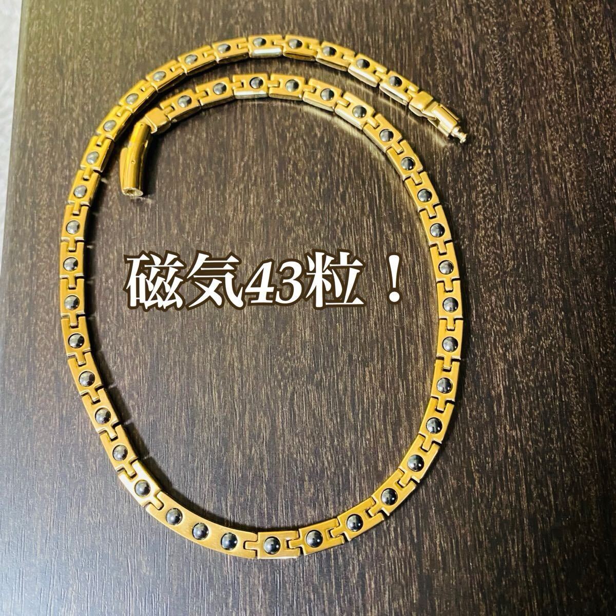 ラスト1点!翌日発送!スチールゴールドチタン磁気ネックレス チタンネックレス!強力磁気43粒! ネックレス 男女兼用 肩凝り