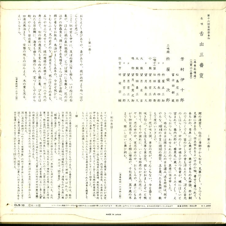 A00476042/10インチ/芳村伊十郎「長唄/舌出三番叟」 [浏览原始页面]