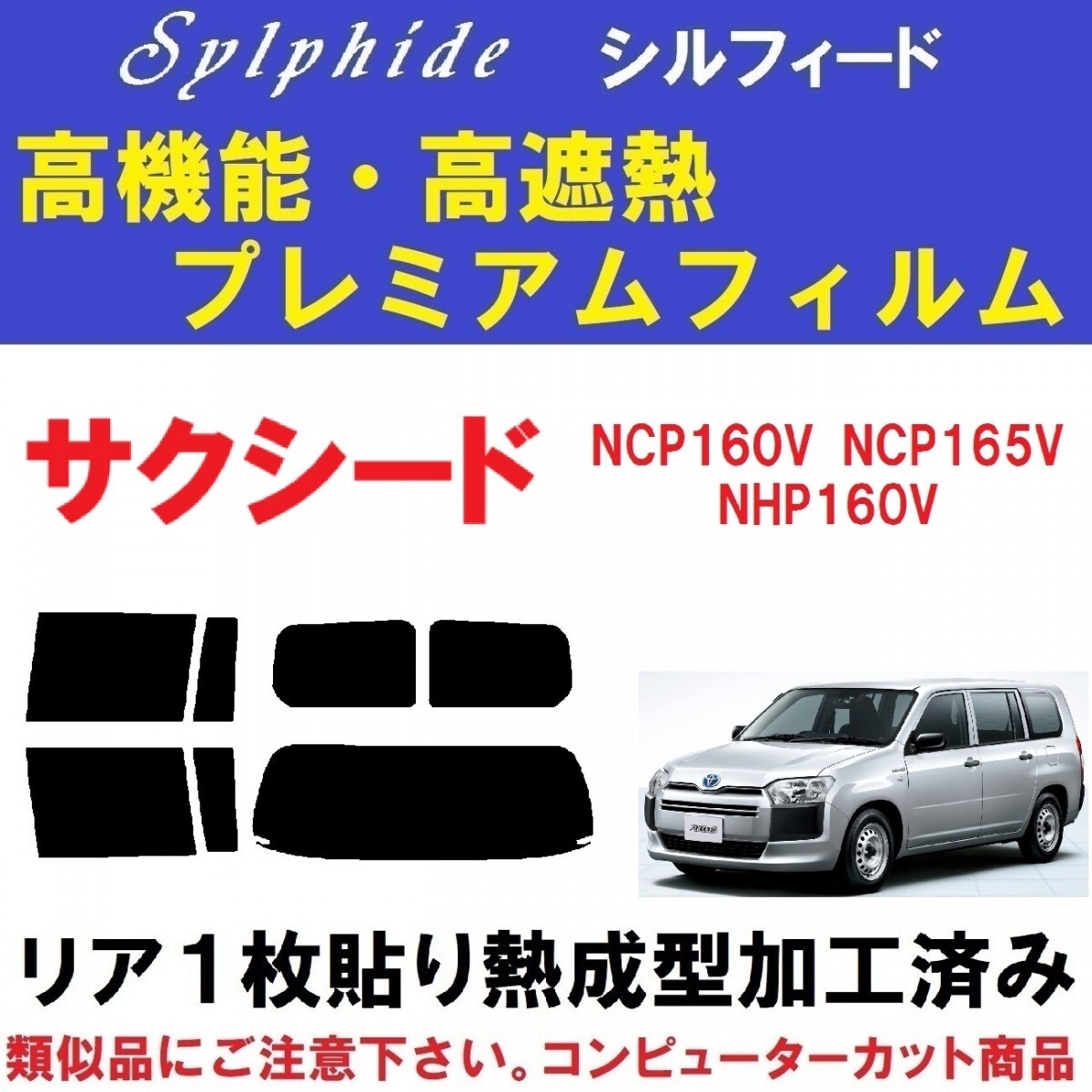 | サクシード 160系用『高機能・高断熱フィルム シルフィード使用』1枚貼り成型加工済みフィルム リア5面セットです。(専用施工液付き) ・信頼の品質と実績で永い間業務用フィルムとして選ばれ続けていIKCS製品です。 ・業務用フィルムの中で最も信頼性の高い、ベストセラー商品です。 ・詳しくはIKCS株式会社HPをご覧ください。 ※シルフィードは、ベンツ等の高級輸入車を取り扱う 全国のヤナセでも指定フィルムとして使用されている信頼性の高い商品です。 平成26年9月~ NCP160V NCP165V NHP160V NSP160V に適合します。 注:平成26年8月以前の50系サクシードには適合しません。 ※適合等 ご不明な点など有りましたら、お気軽にご質問下さい。 ◇◆◇施工に便利なプロ仕様のヘラセット付き商品も出品中です◇◆◇ こちら ◇◆◇精密コンピューターカット◇◆◇ 貼りやすさを最優先に各部のサイズ・形状など微調整し、改良を重ねた独自のデータを製作。 高精度な最新・大型カッティングプロッターによるカットで正確で滑らかなカットラインを再現しています。 施工業者だからわかる、貼りやすいサイズ・形状に仕上げています。 ◇◆◇リア1枚貼り成型加工済み◇◆◇ リアガラスの湾曲に合わせて熱成型加工して有りますので、平面に貼るのと同様にたるみが出ず1枚貼り出来ます。 ※最適な状態に成型加工して有りますので、ヒートガン(ドライヤー)等は不要です。 リアの他、ドア2面もたるみが出やすいので成型加工しています。 ◇◆◇専用施工液付属◇◆◇ 軽視されがちな施工液ですが、貼りやすさに大きく関わる部分になります。中性洗剤などで代用せず、必ず付属の専用施工液をご使用下さい。 濃度については車種・季節などにより変わりますので、個別にお知らせ致します。 ☆高機能・高断熱フィルム シルフィード☆ シルフィードは、太陽エネルギーの中の赤外線を大幅にカットすることで車内の温度上昇を抑え、より快適な車内環境を実現する高性能断熱カーフィルムです。 スモークの濃さとは関係なく赤外線のカット率がほぼ一定なので、お好みの濃さのフィルムで優れた断熱効果を実感できます。 赤外線吸収率の高い金属酸化物ITO(酸化インジウムスズ)からなるセラミックを採用する事で高い遮熱効果を実現しているので、遮熱効果を求める為に真っ黒やミラーと言ったフィルムを選択する必要はありません。 透明性も高く、ハードコートでキズにも強いシルフィードは長期間にわたって持続します。 「Sylphide」シルフィードの信頼性は、ベンツなどの高級外車を取り扱う全国のヤナセで指定フィルムとしても取り扱いをされています。 ☆車内の温度を上げる要因・赤外線を大幅カット☆ 赤外線は、目に見える光ではありません。車窓から入り込む太陽光の中に含まれる赤外線は車内の温度を上げる大きな原因となっています。 光の大半を遮断する様な真っ黒なフィルムや光を反射するミラー仕様のフィルムを使わなくても、シルフィードは赤外線を90%以上も遮断して車内の温度上昇を抑えます。お好みの濃さ、お好みの色のフィルムで快適な車内環境を実現し、クリアな視界を確保できる高機能フィルムです。 ■フィルムの種類■ 可視光線透過率 3% SC-7003 可視光線透過率 7% SC-7008 可視光線透過率13% SC-7015 可視光線透過率20% SC-7020 可視光線透過率30% SC-7030 可視光線透過率46% SC-7045 ■全商品、キズに強いハードコート・紫外線(UV)カット率99% 赤外線(IR)カット率92%です。 ※可視光線透過率が低くなるほどフィルムの色は濃くなります。 サイドとリアで濃さを替えたり等、可能です。 部分的にフィルムが必要になった場合、単品販売も承ります。 他にもサクシード用フィルム、各種出品中です。こちらもご覧ください。 ご不明な点など有りましたら、お気軽にご質問下さい。 | ||