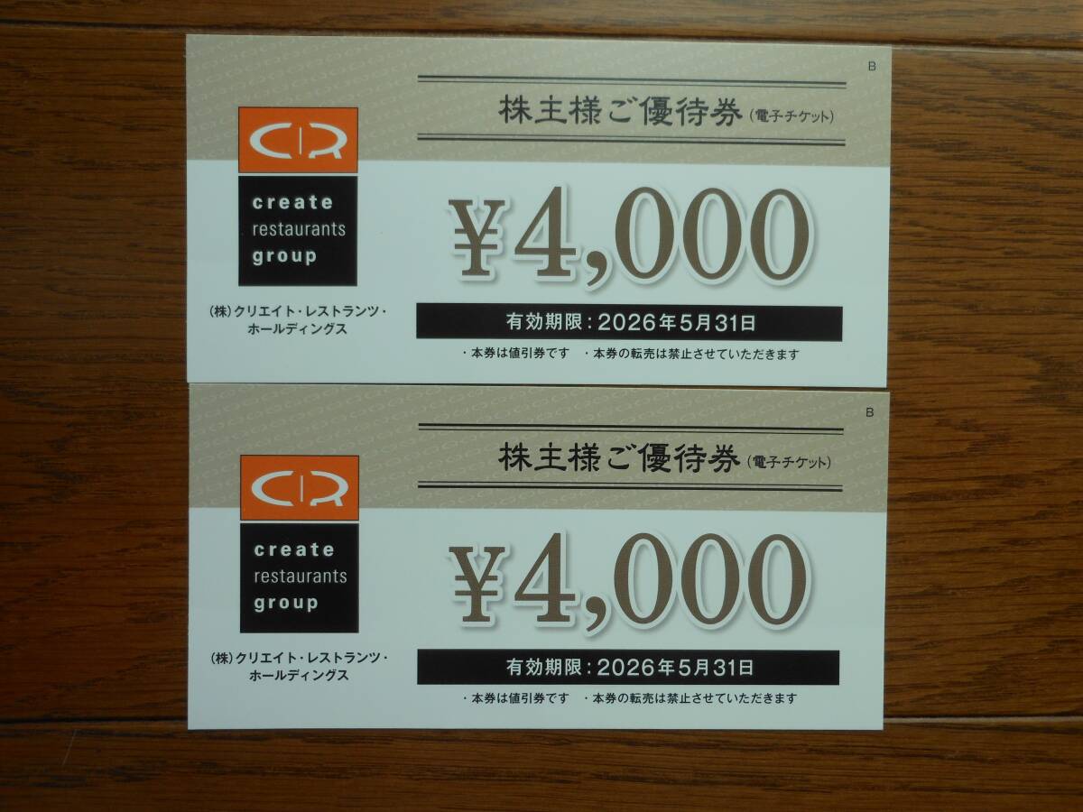| クリエイト・レストランツ株主優待券 8000円分 (4000円券×2枚) |