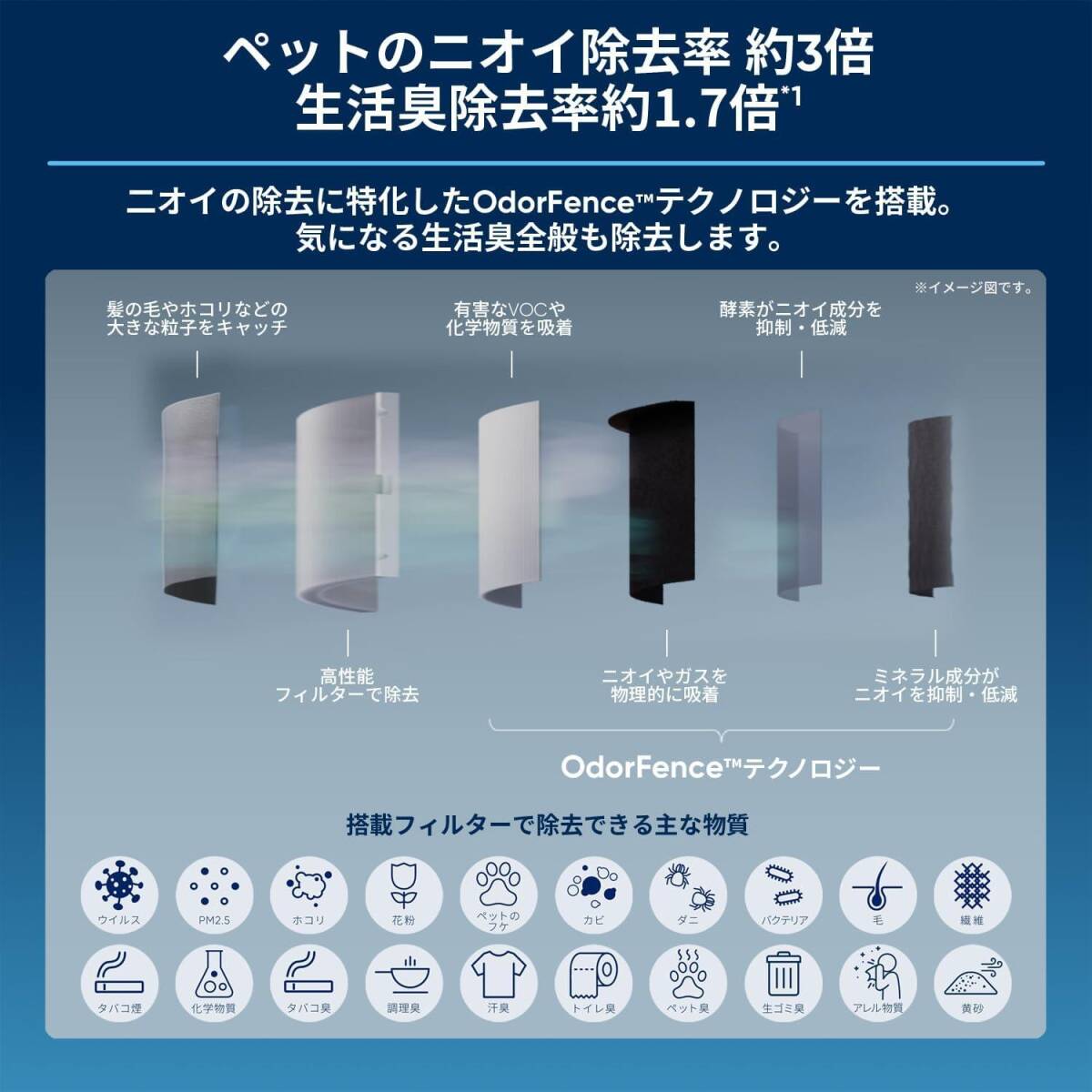 | 空気質感知センサー | あり(PM1/PM2.5/PM10/TVOC測定) |