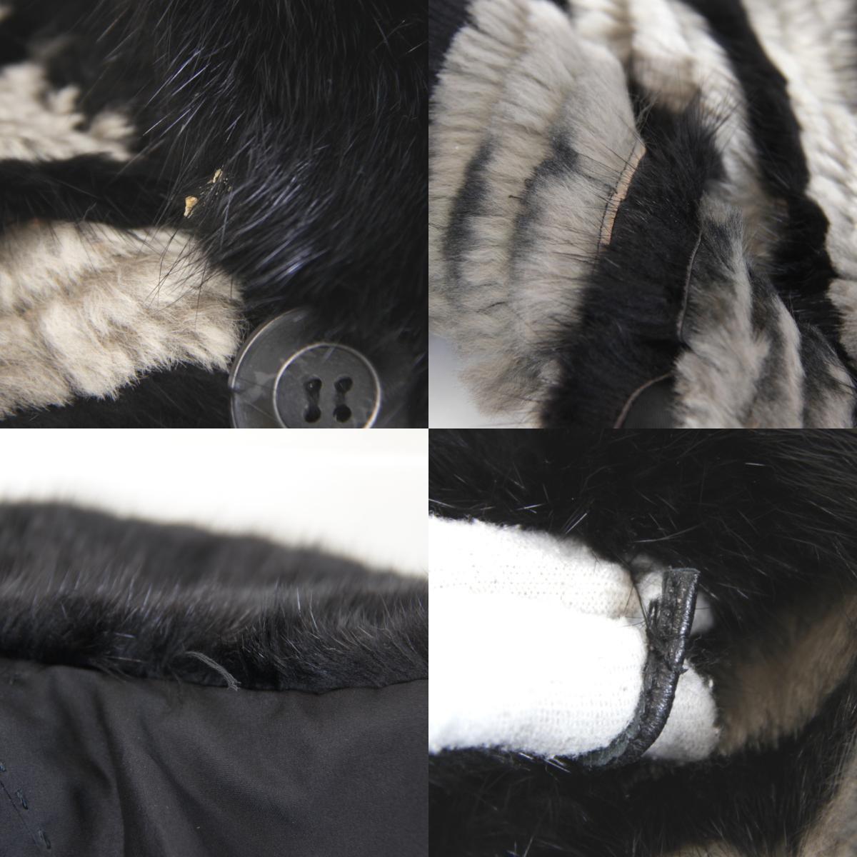 | C | 表面:汚れ、破損、劣化、糸のほつれ 状態コメント:ブラックのシルク面に白っぽい汚れ、マスクラット毛皮部分にこびりつく汚れがございます。糸のほつれが複数個所ございます。ぱっと見の使用感はあまりありませんが、一番上のボタンを留める革紐がちぎれかかっている他、毛皮と裏地を繋ぐ糸がちぎれている部分が複数個所ございます。毛皮の地肌に少々劣化を感じます。 |