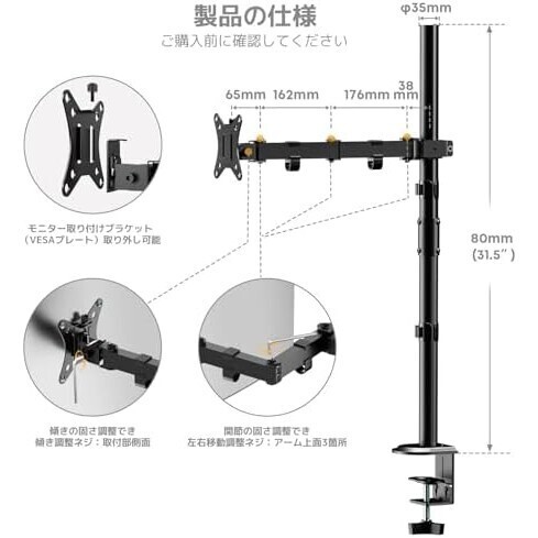 モニターアーム ロングポール 13-35インチ対応 耐荷重9kg VESA 75x75/100x100mm クランプ式 グロメット式 角度調整 配線収納| 出价者 | 信用 | 价格 | 时间 |
