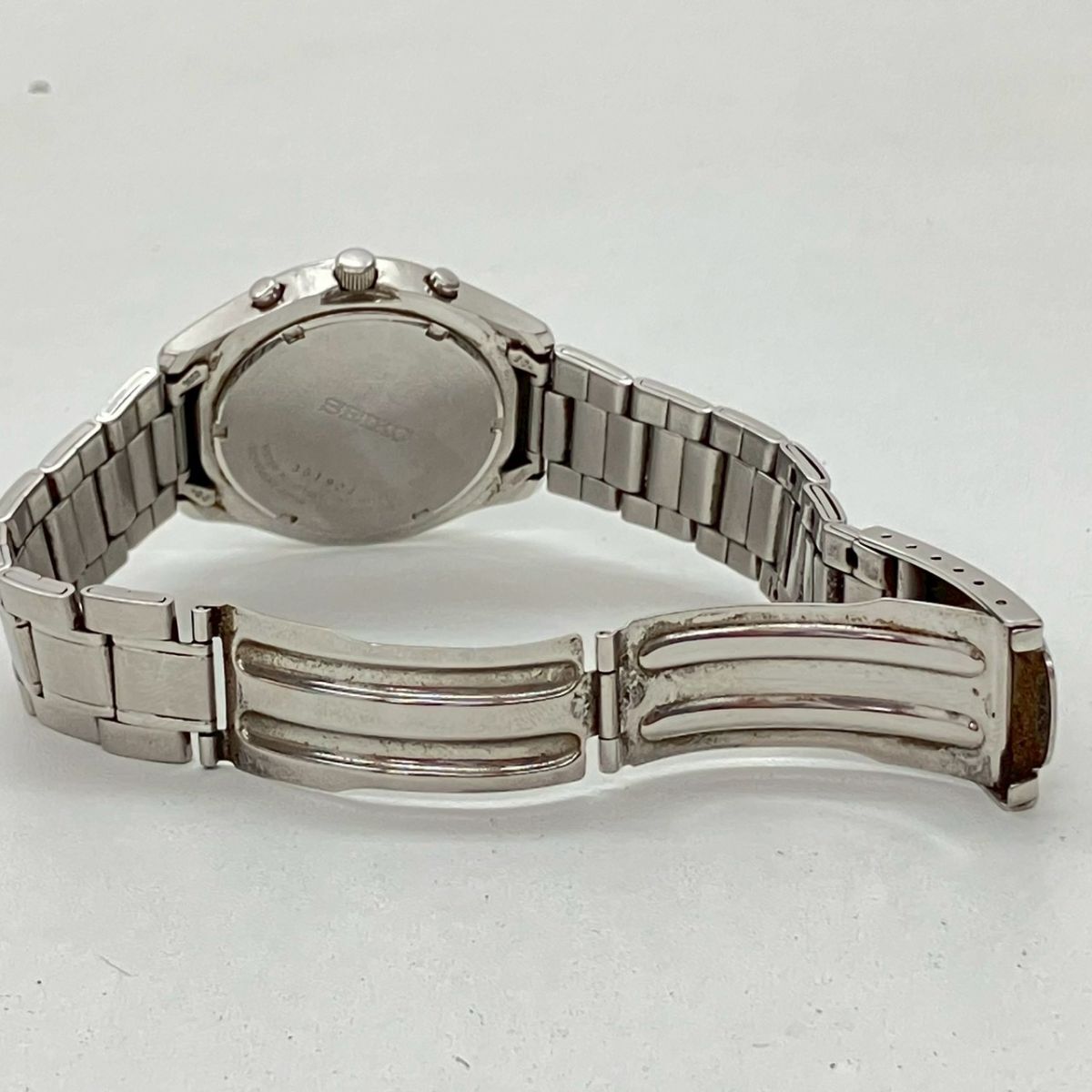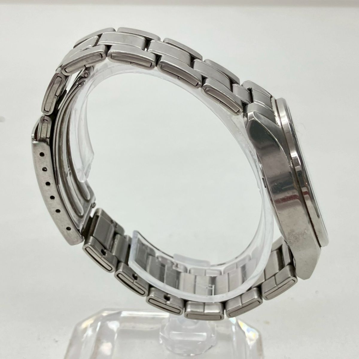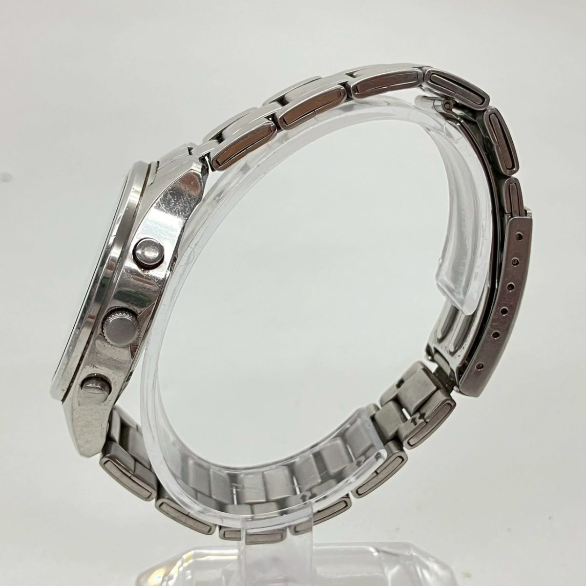 取り扱っている商品は未使用・未開封も含め、全て一度は人の手に渡った一点ものの中古・ジャンク扱いでの商品です。 当方素人ですので肉眼で確認できる簡易的な検品、採寸、および簡易梱包となります。 ※稼働の記載につきましては秒針等の確認のみとなり、全体の動作を保証するものではございません。 また、出品時の中古品の動作状況となりますので、予めご了承の上でご入札ください。 不動の表記につきましてはクォーツ式のムーブメントの場合、動作未確認の状態となります。 電池交換後、不具合があった場合でも返金、返品の対象とはなりませんので、予めご了承くださいますようお願い致します。 細かな日差、オーバーホール状況、社外パーツの使用に関しては保証しかねますので、ご理解いただけた上でのご入札をお願い致します。 上記を踏まえた上で中古品、ジャンク商品として出品させていただいておりますので、全てご理解いただけた上でのご入札をお願いいたします ------------------------------------------------------------------------- 【サイズ】 直径約4cm 腕回り約17cm 【付属品】 画像参照 【稼働状態】 不動 【その他状態】 傷や汚れあり ------------------------------------------------------------------------- 画像にあるものが全てです。 他詳細は画像にてご判断ください。 ※目立つ傷や汚れを中心に写真を撮っておりますが、画像に写りきっていない傷等がある場合もございます。予めご了承ください。 ※商品を多数出品している関係で、稀に商品説明や画像に誤りがある場合がございます。予めご了承ください。 こちらのページをご覧いただく際は、商品説明文と掲載している画像の全てを確認いただいた上でご入札ください。 | |||||||