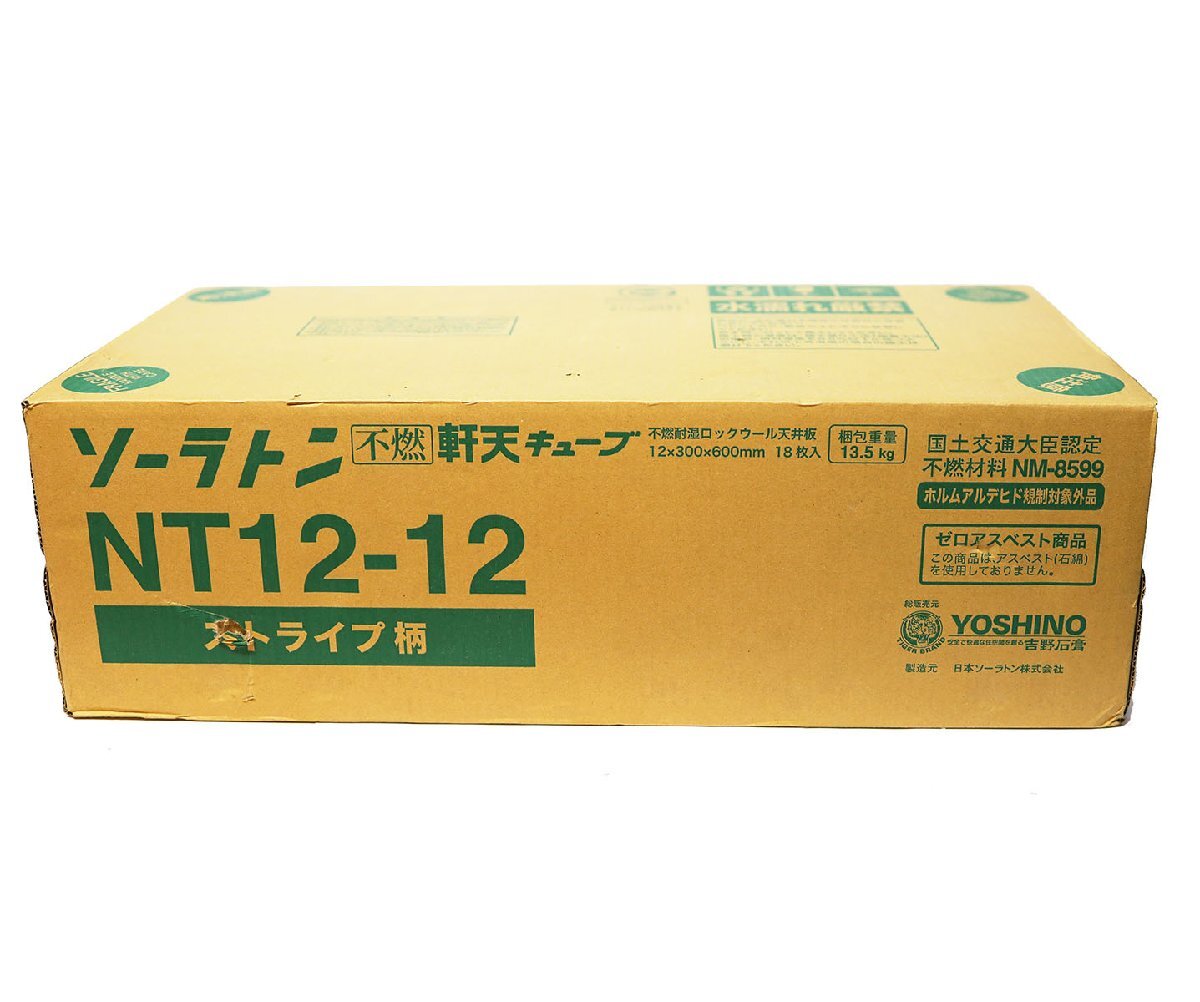 | ◆商品詳細 | こちらは吉野石膏の不燃耐湿ロックウール天井板 ソーラトン NT12-12【12×300×600mm 18枚入 / 13.5kg / ストライプ柄】です。 商品の詳細はメーカーHPなどを必ずご確認ください。 | |
