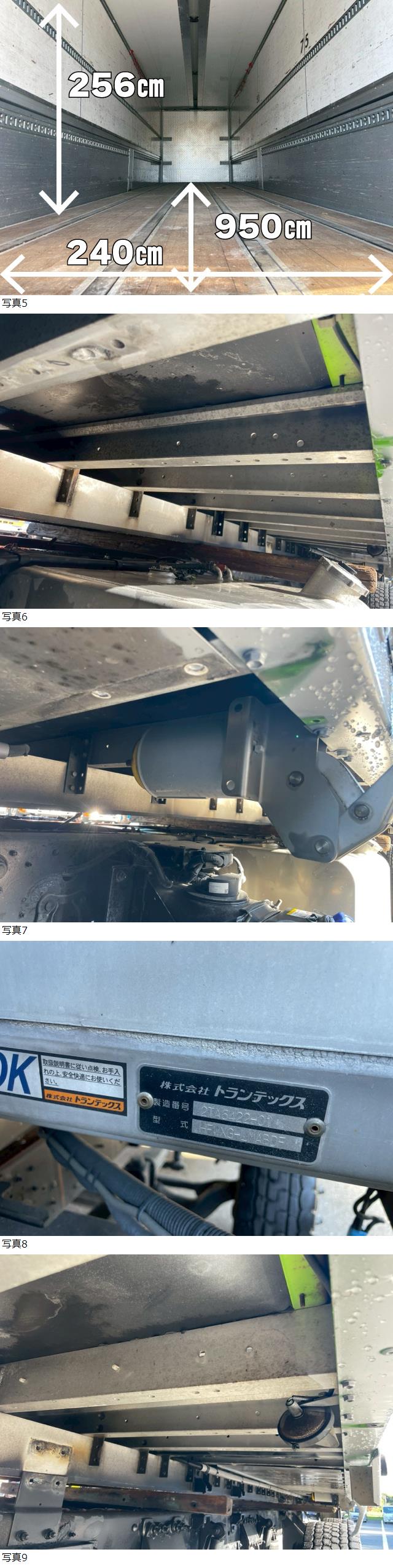 | 大型 ウイング 箱 日野 4軸低床より取り外し トランテックス製 ジョルダー床 内寸:950×240×256㎝ |