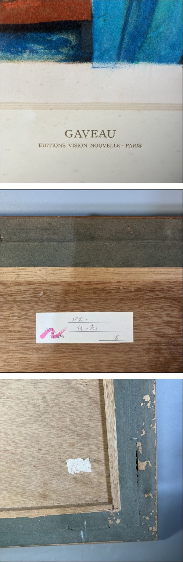 | L2-378 クロード・ガボー/Claude Gaveau リトグラフ 白い花 エディションNO.8/150 木製額縁 アクリルガラス入り 約69/85㎝ | ||